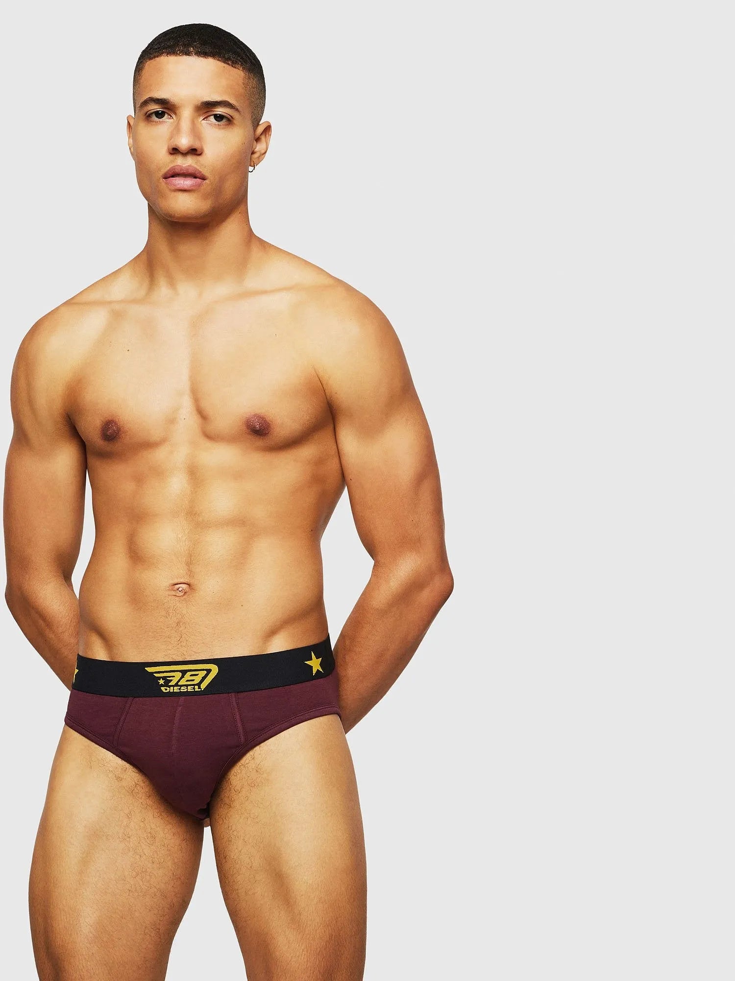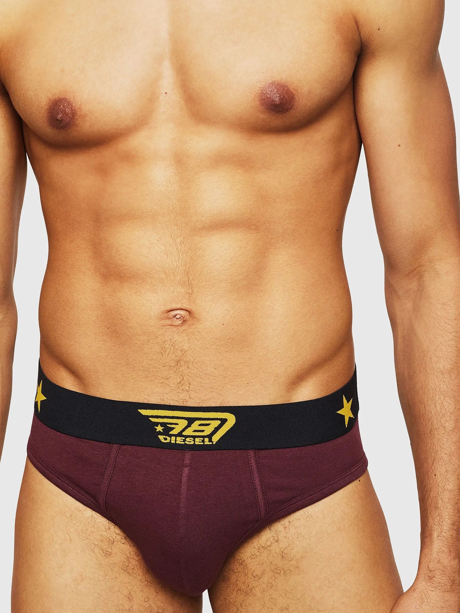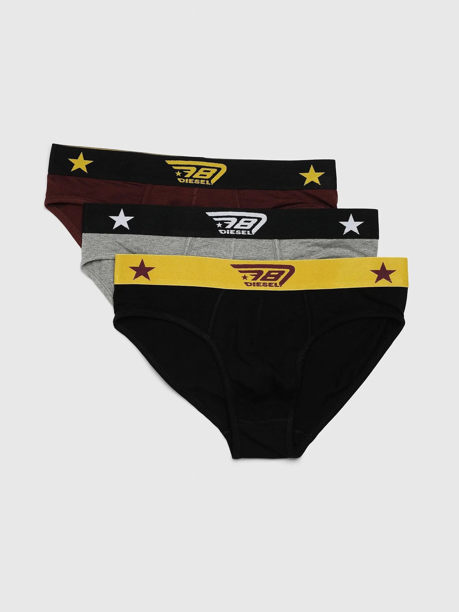 Set aus drei Slips aus Stretch-Baumwolle in verschiedenen Farben. Jedes Stück verfügt über einen Kontrastbund mit Sternen und unserem D78-Logo.