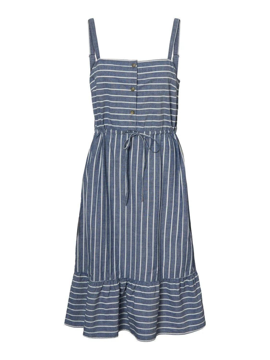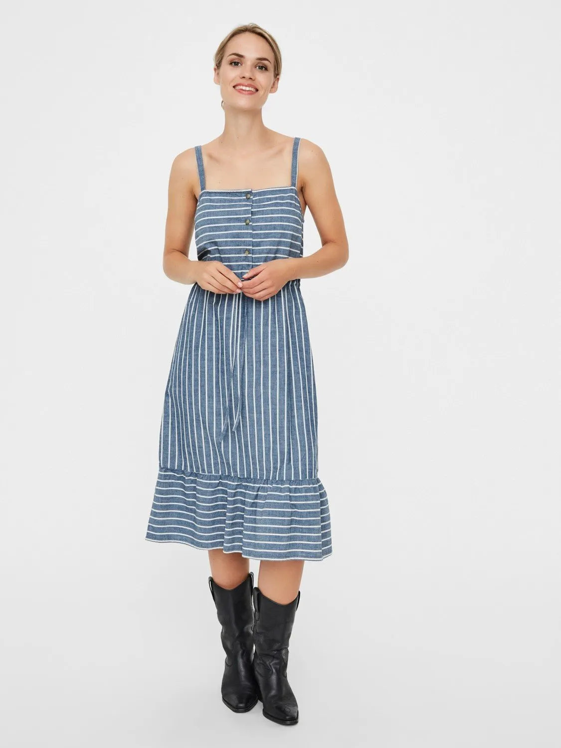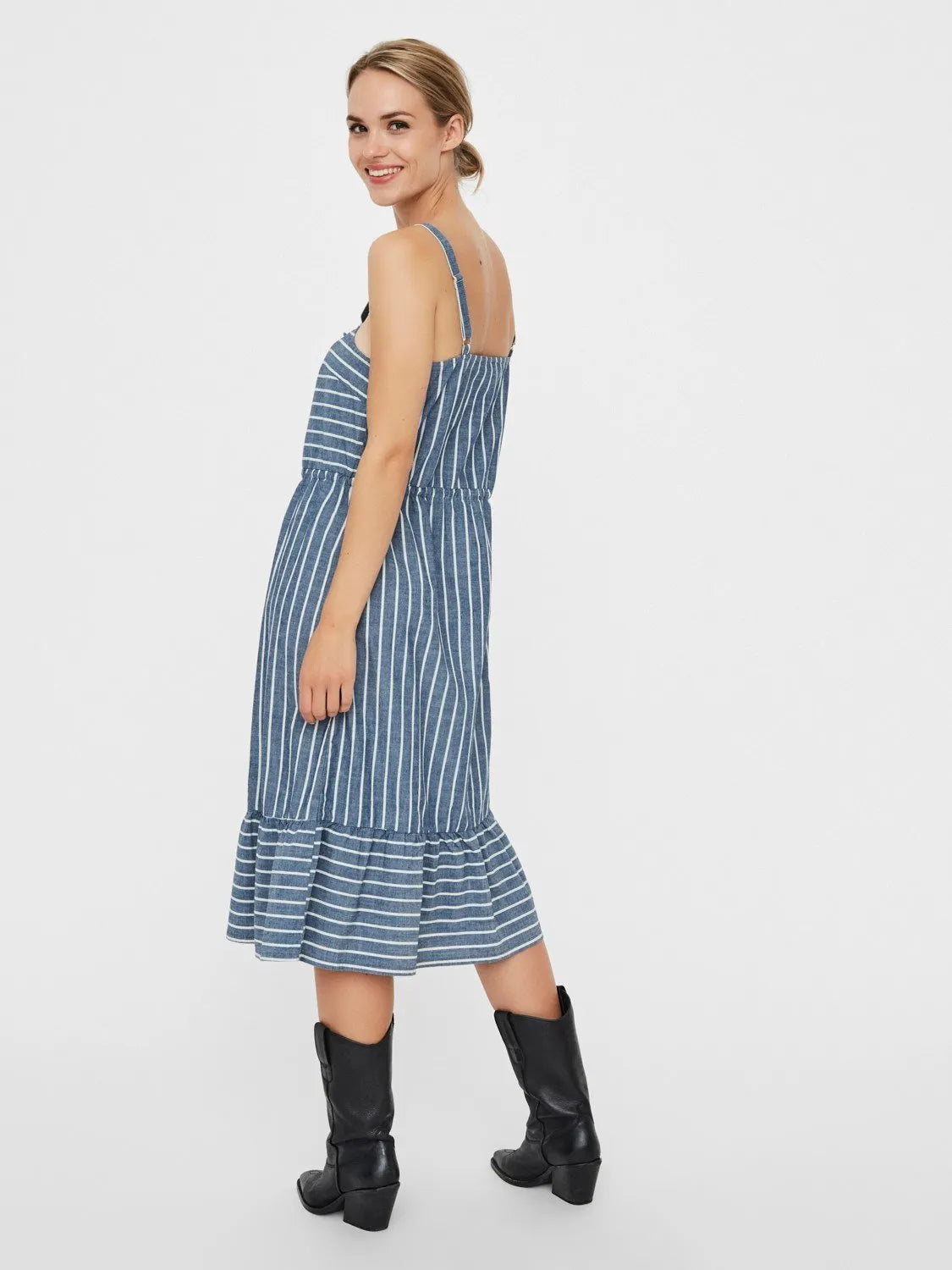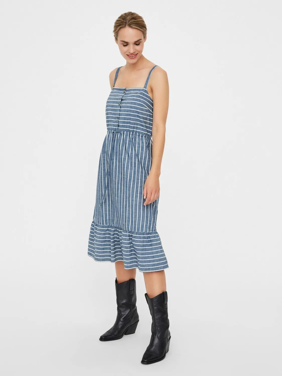 Midikleid mit Streifen und Trägern. Das Kleid sieht im Sommer mit Sandalen und Sonnenbrille toll aus.