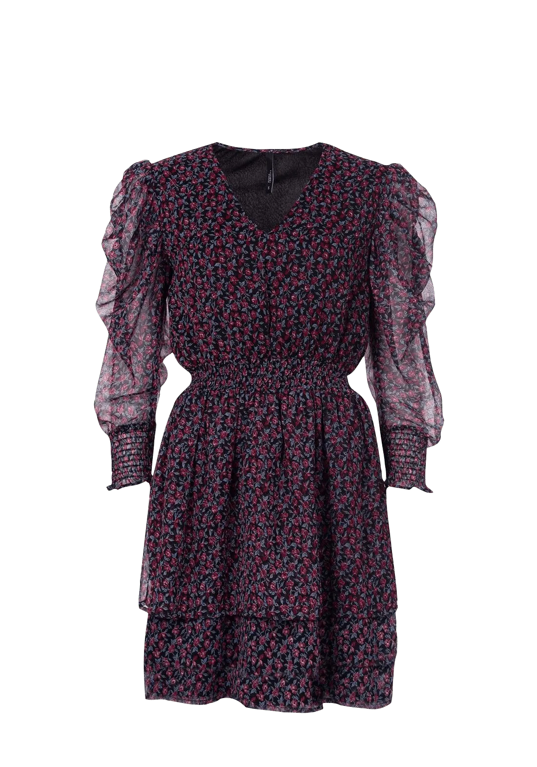 Kleid mit V-Ausschnitt und langen Ärmeln mit Gummizug. - Allover-Druck. - Elastisches Taillendetail. - Modellgröße: 178 cm | Größe: S – 100 % Polyester – nicht über 30 °C waschen