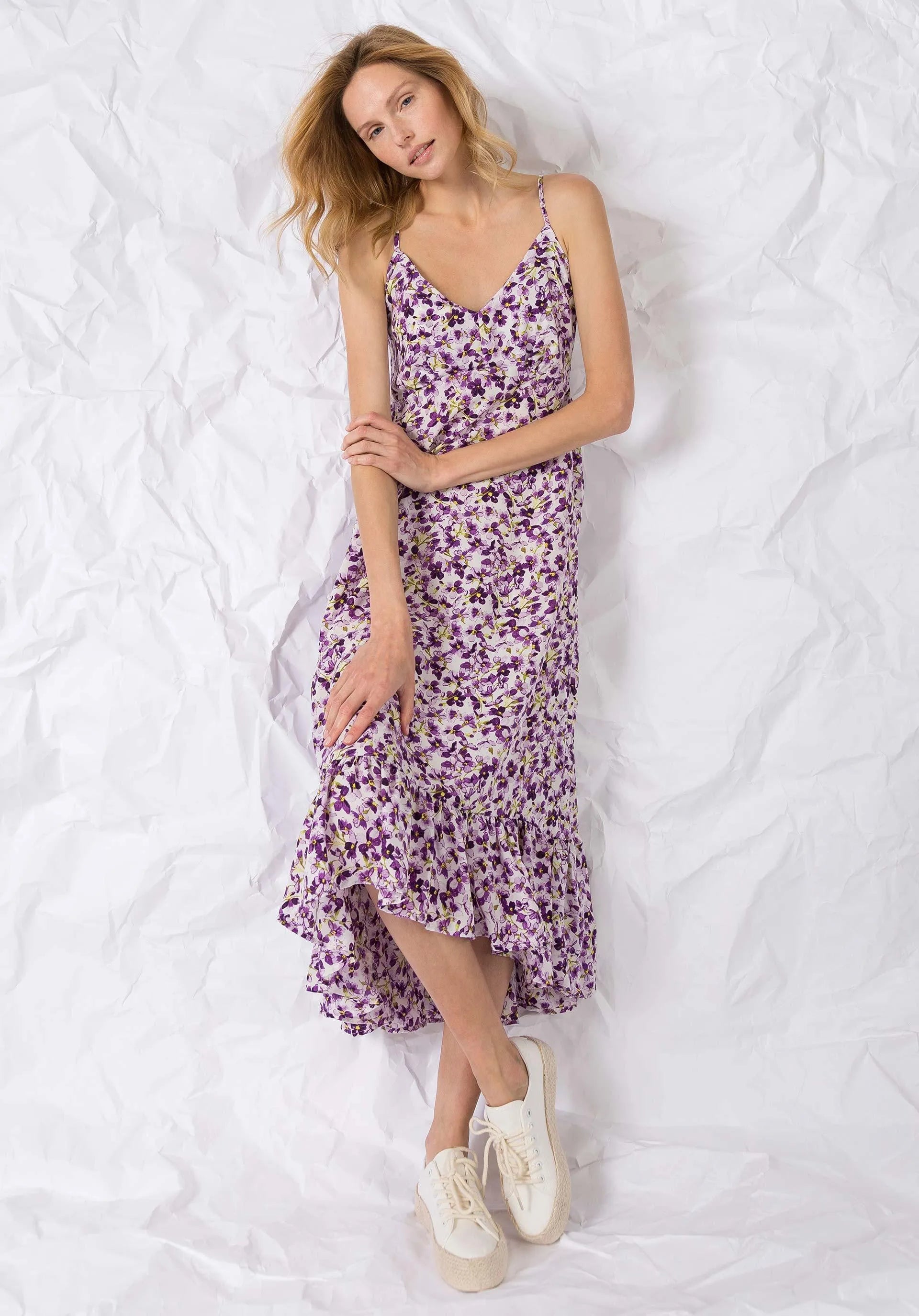 Langes Kleid mit Trägern oder bedruckten Trägern.
