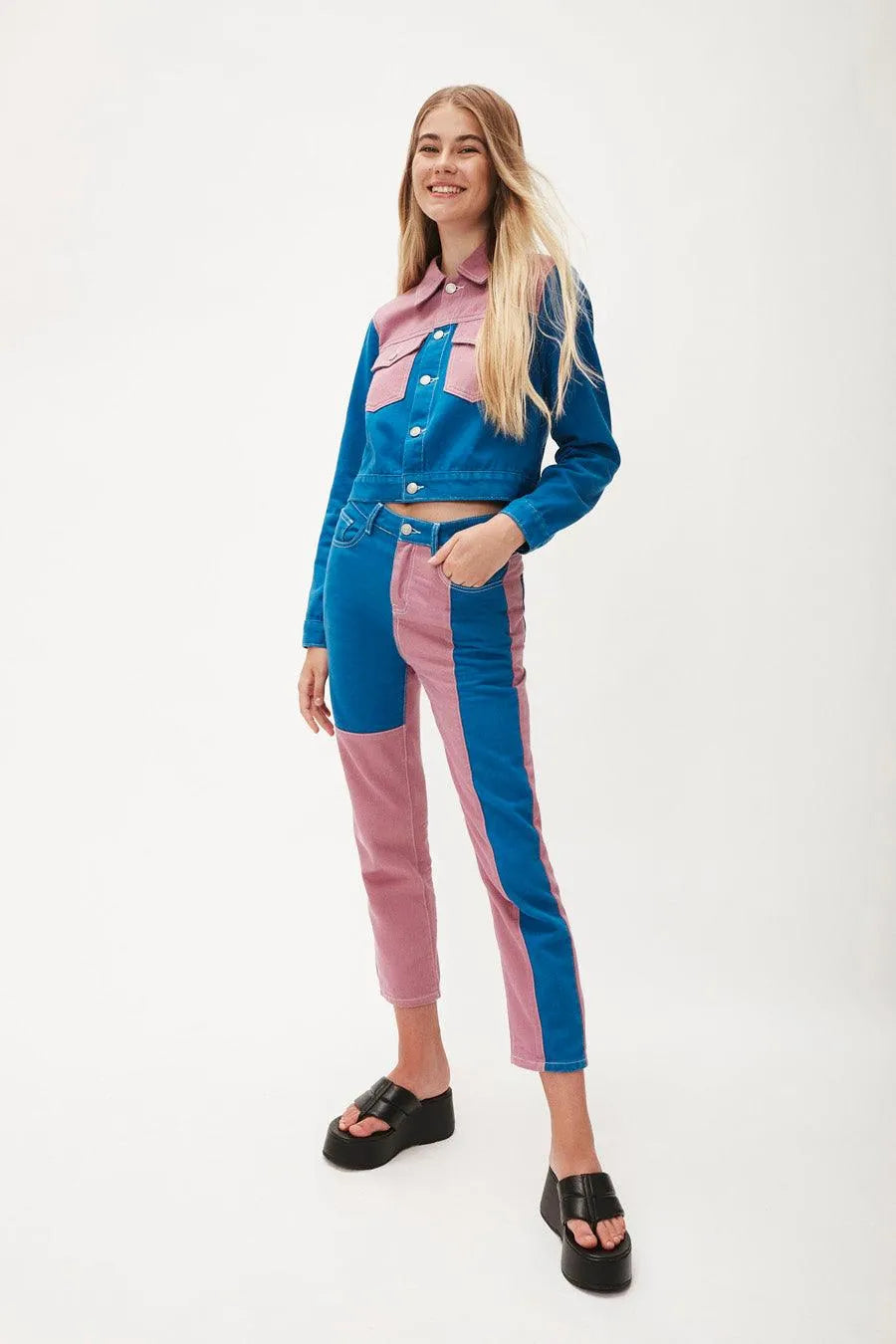 •  Jeansstoff aus 100 % Baumwolle