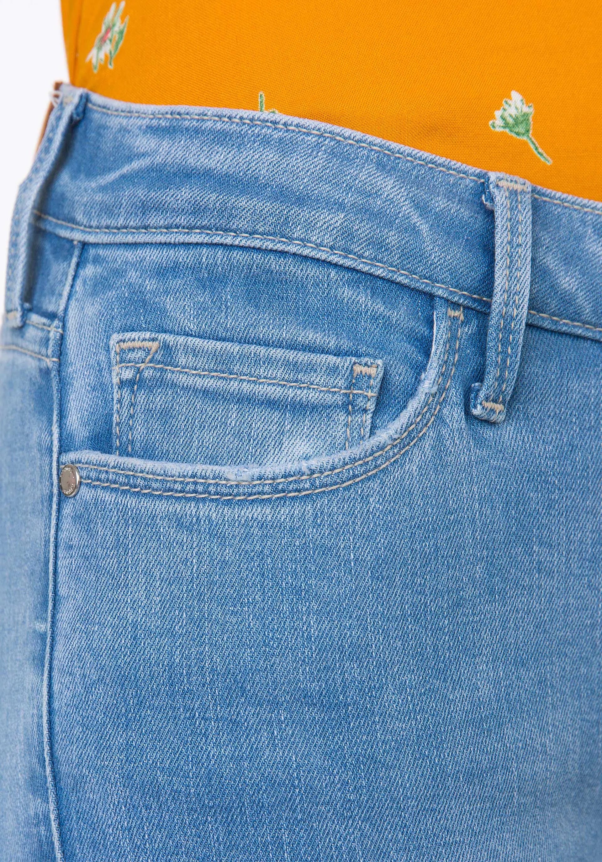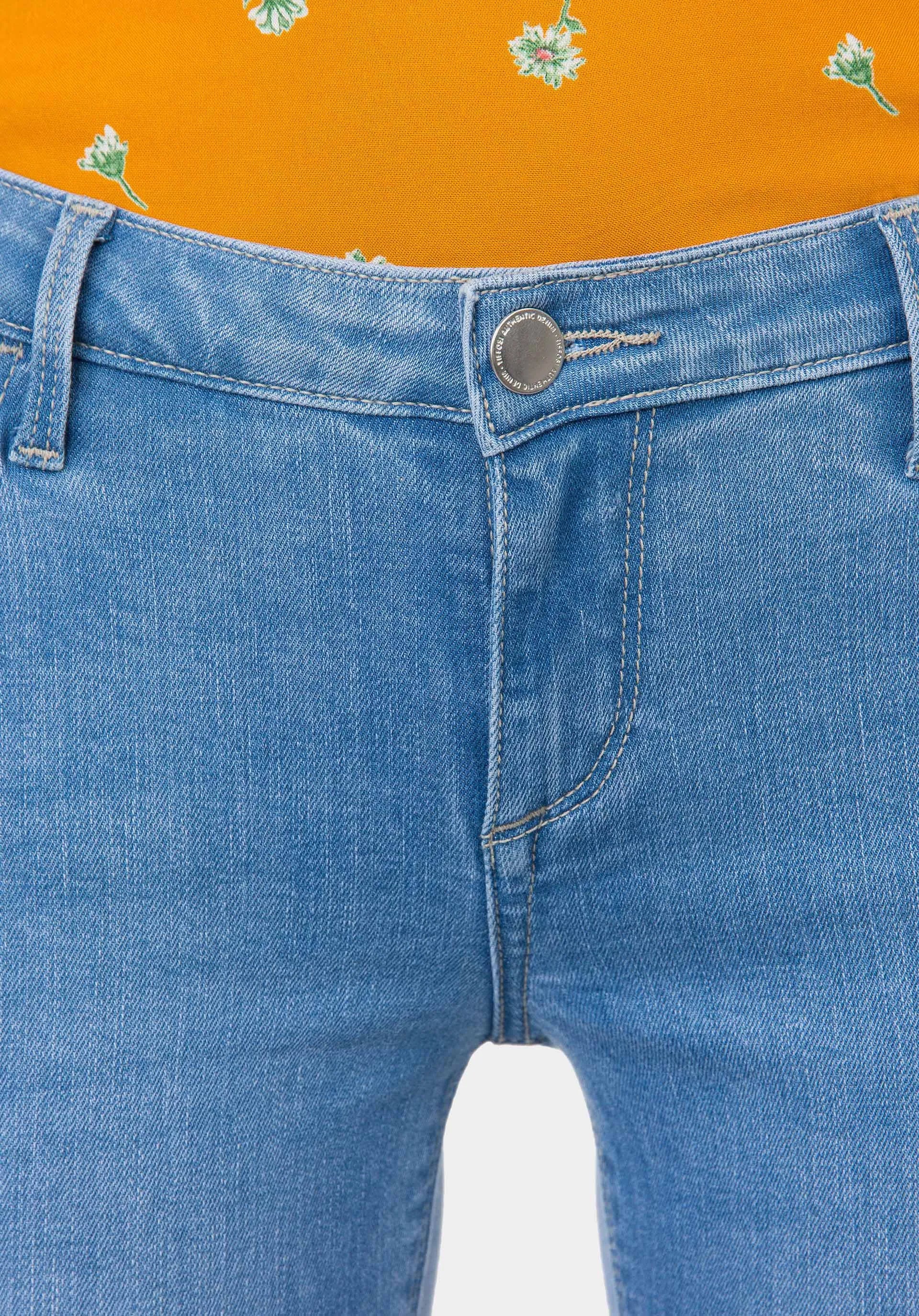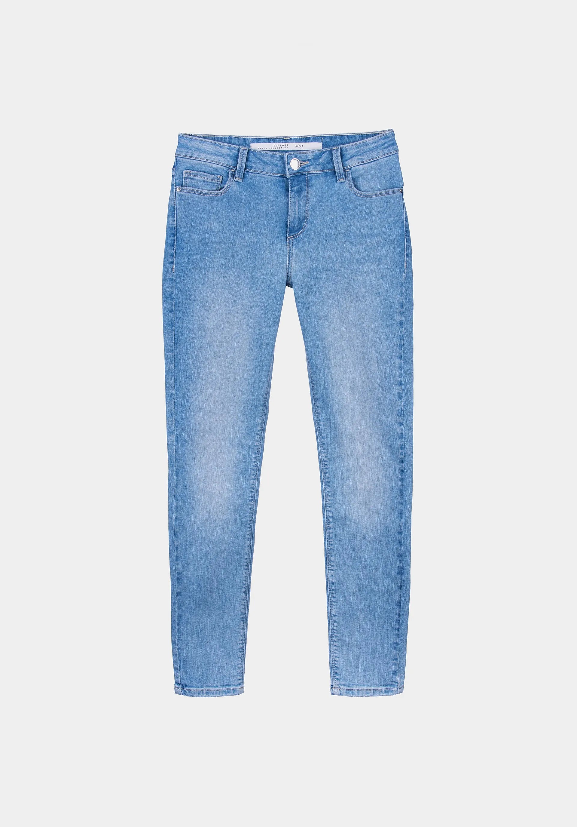Skinny-Jeans mit niedriger Leibhöhe und fünf Taschen. Frontverschluss mit Reißverschluss und Metallknopf.