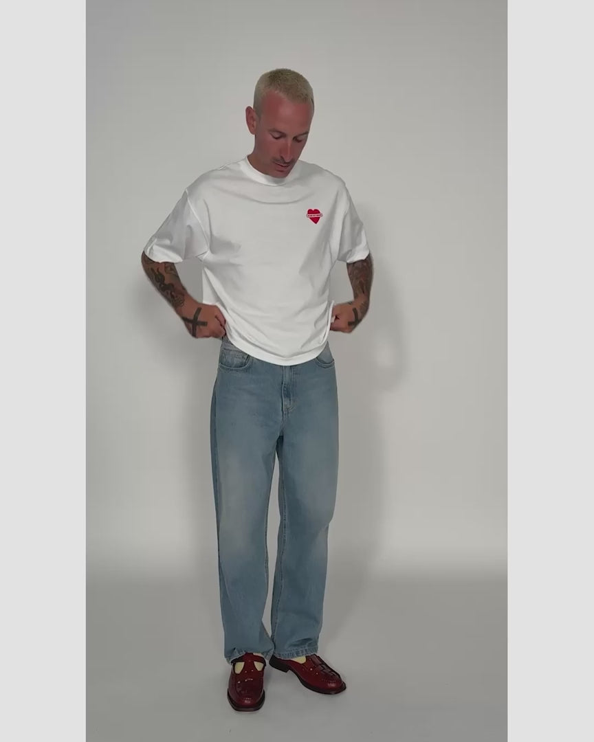 La camiseta UNION LOVE recupera uno de nuestros primeros diseños gráficos, ahora mejorado con un corte oversize y grueso, porque las camisetas ajustadas y las cargas emocionales no combinan bien.