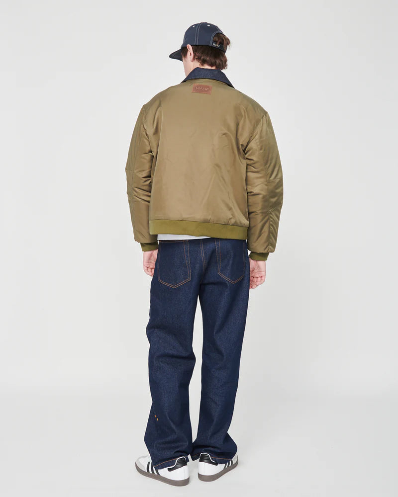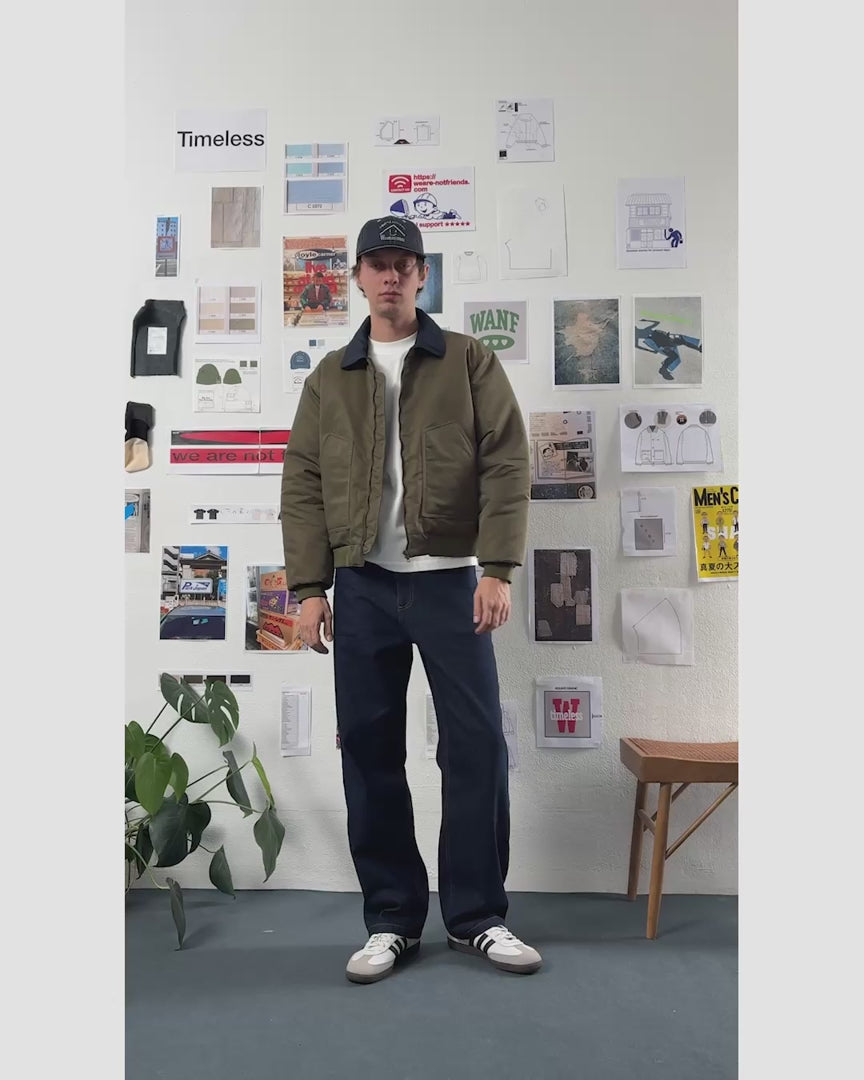 De corte regular, esta bomber apuesta por una silueta cómoda y atemporal. El cuello en contraste tipo denim introduce un detalle sutil que eleva el conjunto sin perder versatilidad. Una prenda pensada para acompañar looks relajados o composiciones más pulidas según cómo se combine.