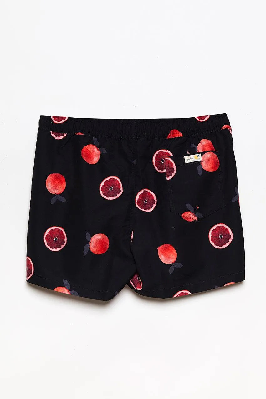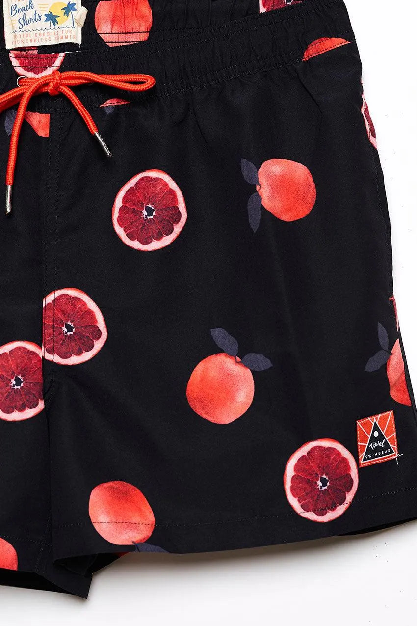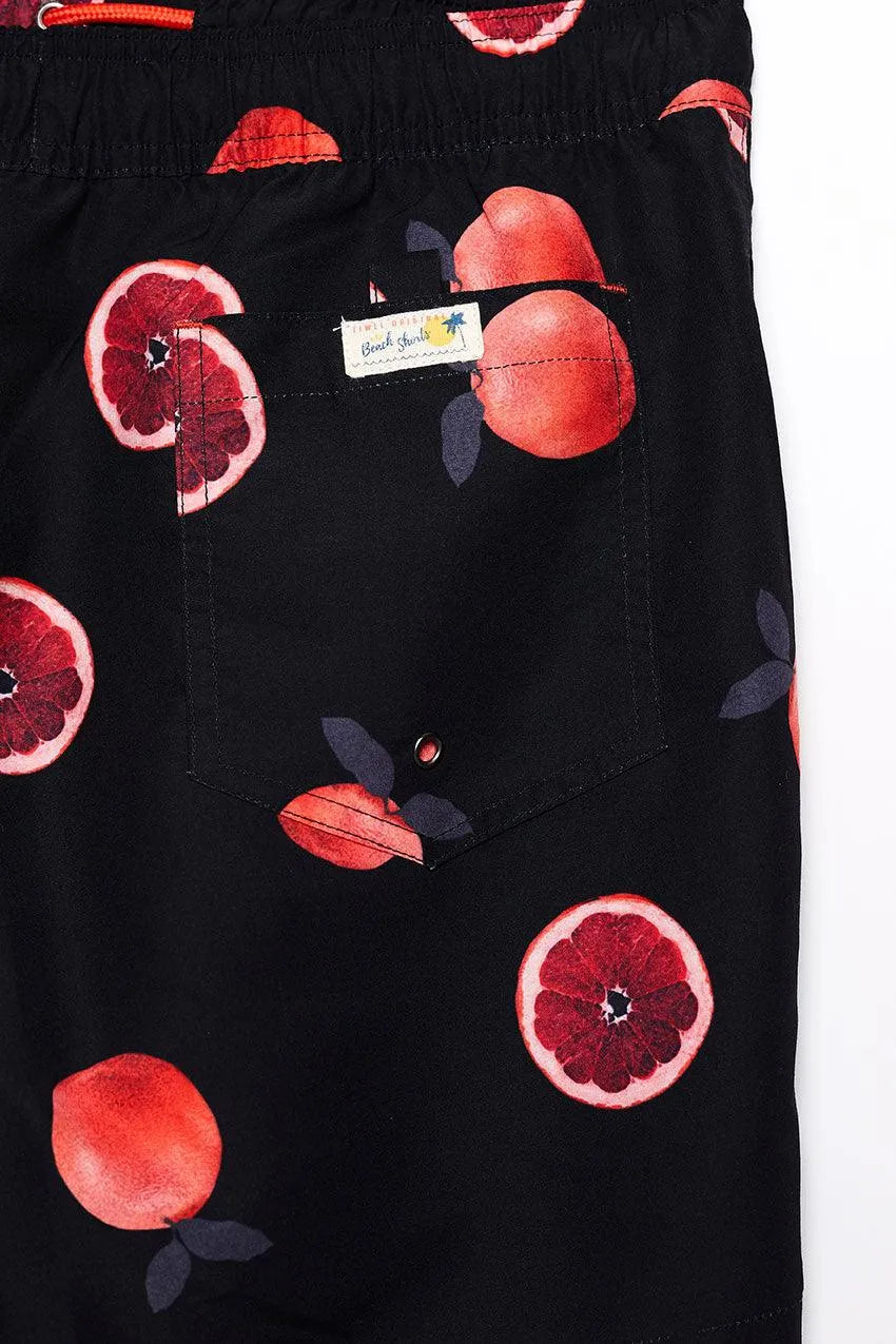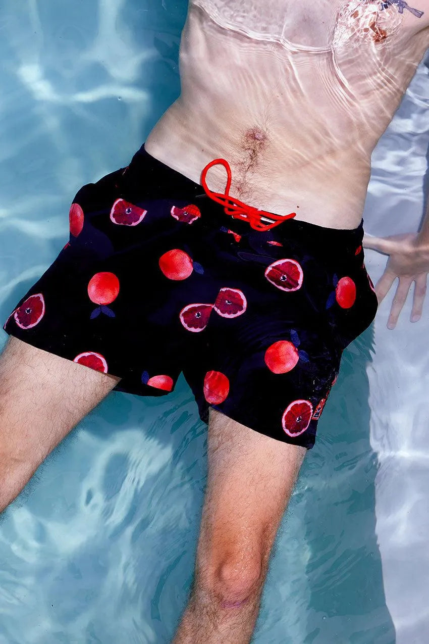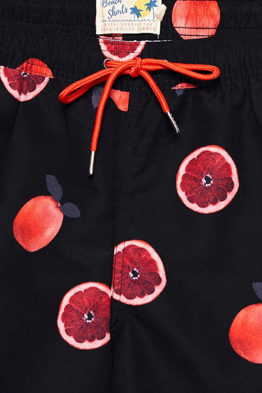 Citrus-Badeanzug mit verstellbarem elastischem Bund und Kordelzug, der ihn bequem und funktionell für das Baden in diesem Sommer am Strand oder Pool macht. All-Over-Print Mandarin-Dekoration und Druck exklusiv für die neue Frühjahr-Sommer-Kollektion, Sonderedition, „Reich der Flora und Fauna”.