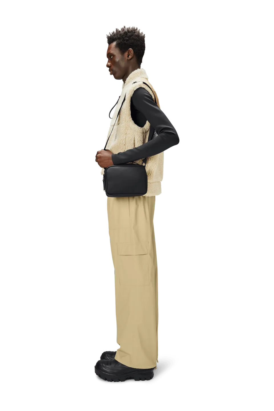 Die Box Bag besteht aus wasserdichtem PU, dem charakteristischen Stoff von Rains, der maximale Widerstandsfähigkeit und Haltbarkeit sowie einen weichen Griff bietet.