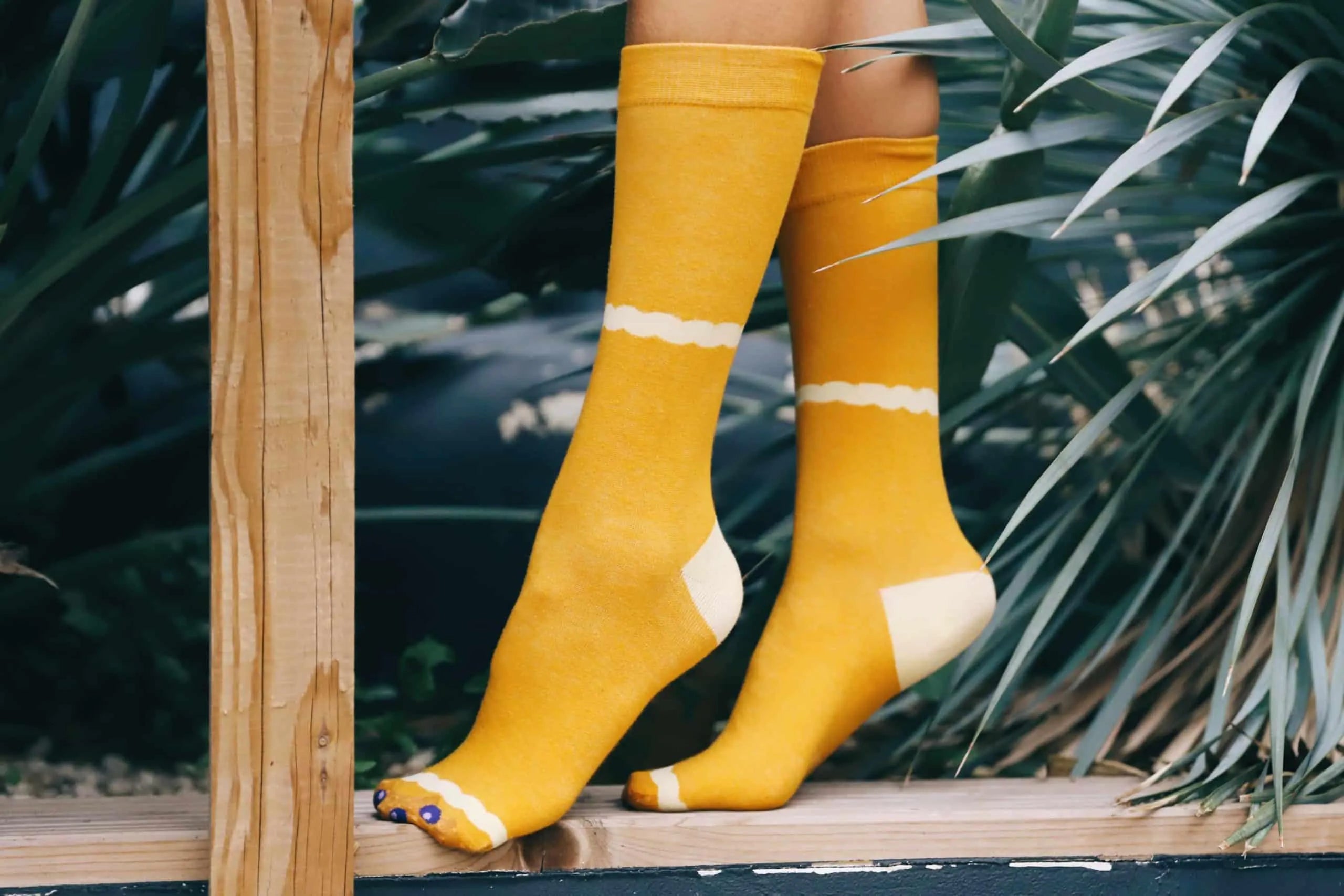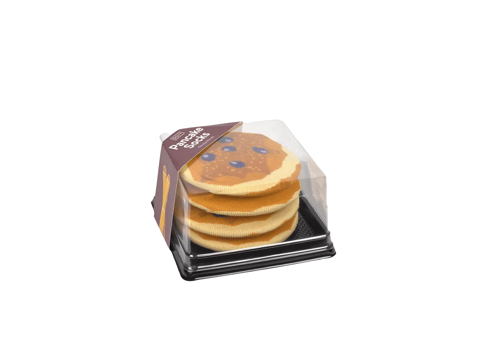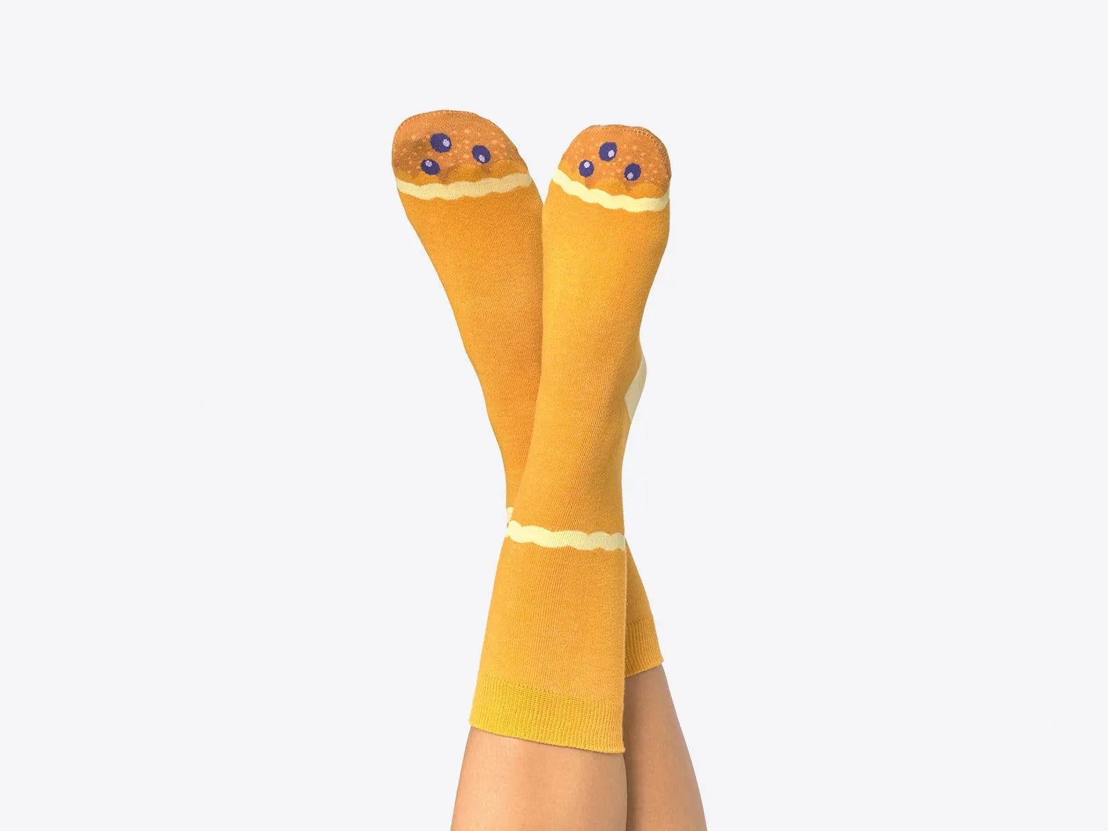 Ein Paar bequeme und lustige Socken in Pfannkuchenform. Einheitsgröße.