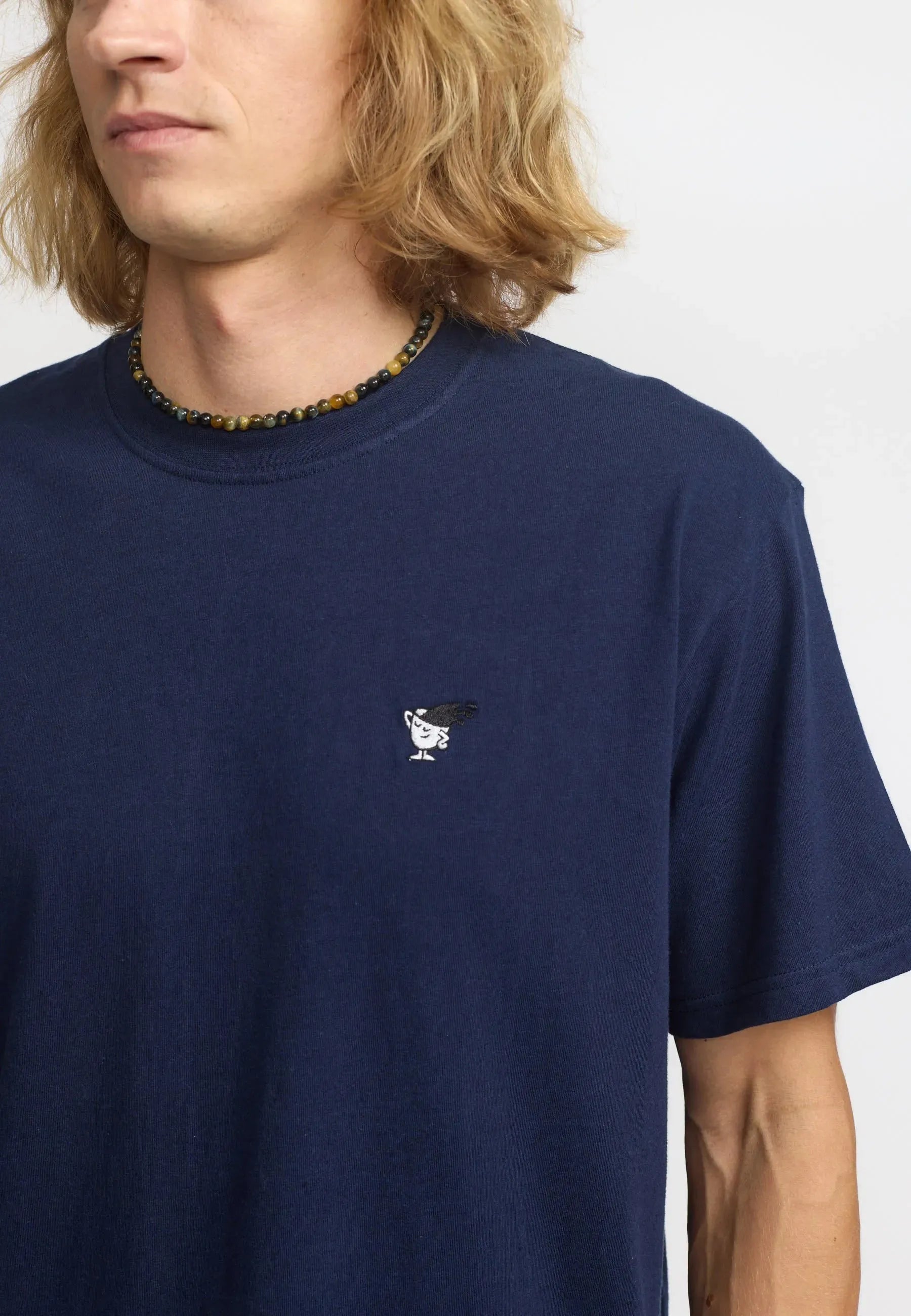 Ein locker sitzendes T-Shirt mit Rundhalsausschnitt aus Bio-Baumwolle mit einer kleinen Stickerei auf der Brust