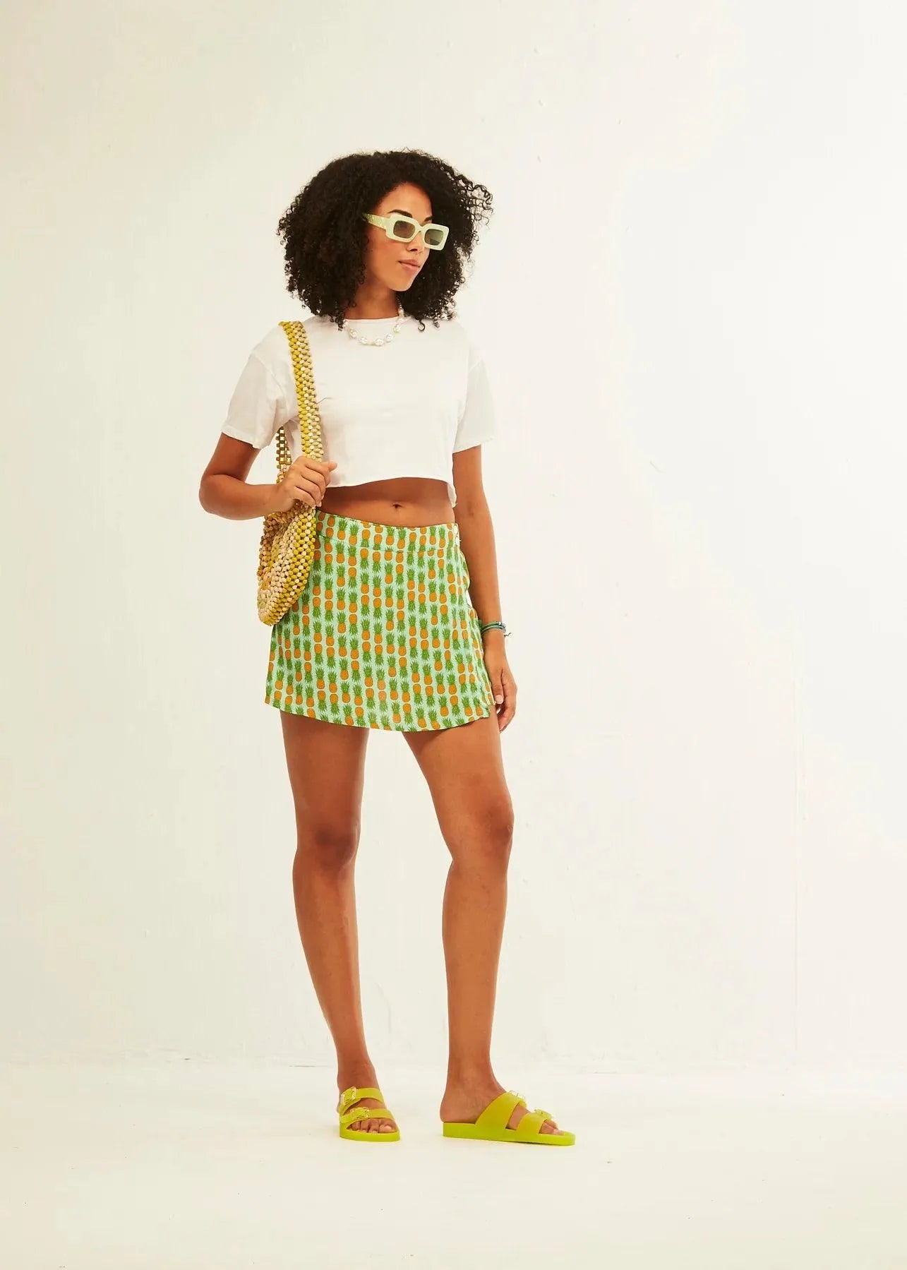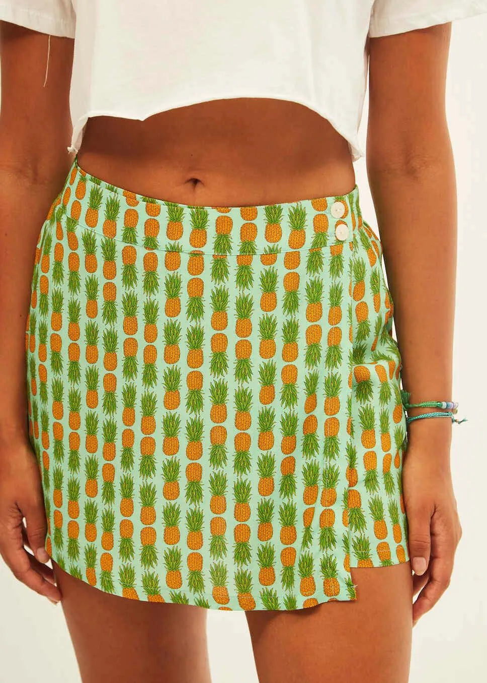 Grüner Skort mit Ananas-Print. Zusammensetzung: Rayon 100 %.