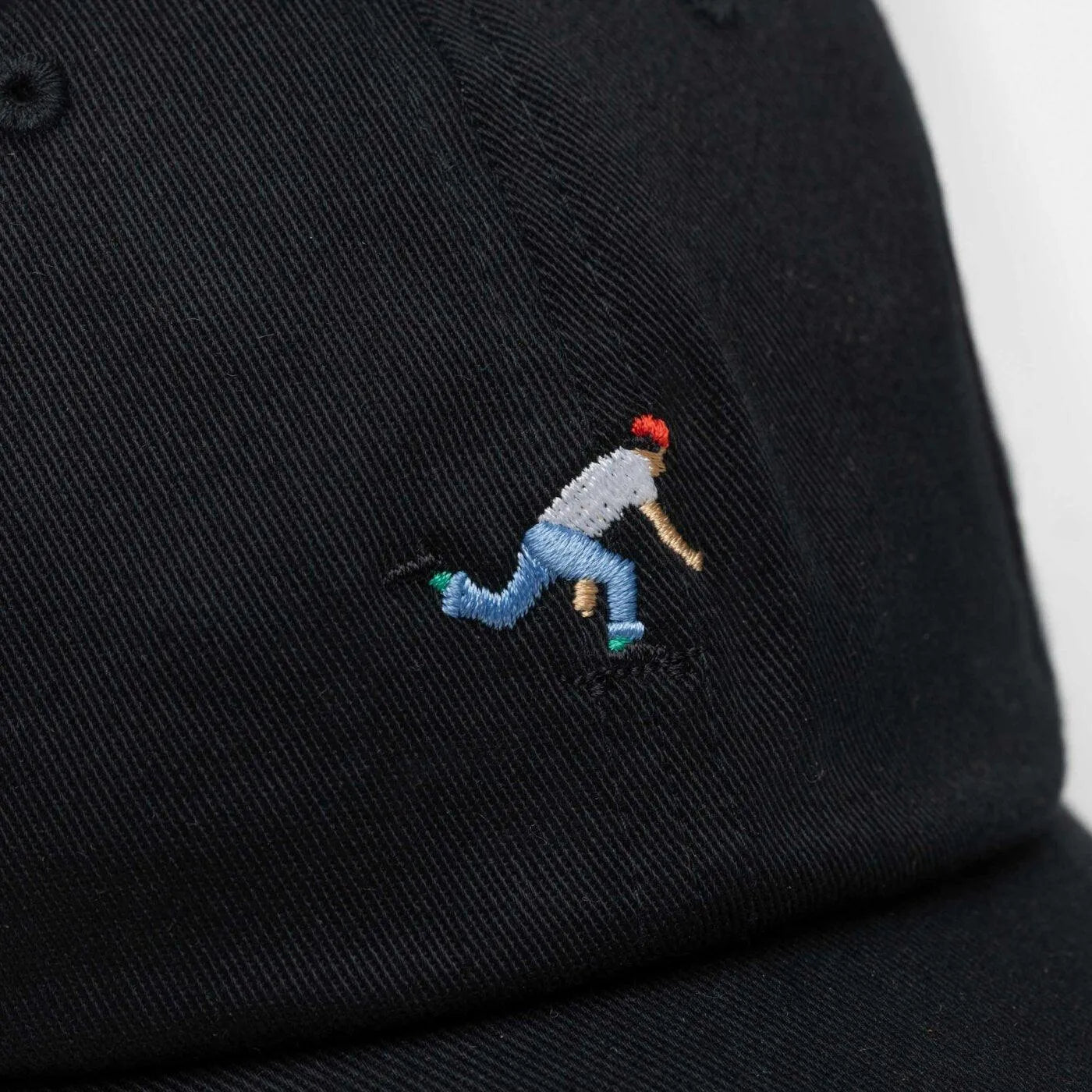 Eine weiche Kappe mit abgerundeter Krempe. Es hat eine Stickerei auf der Vorderseite und einen verstellbaren Riemen auf der Rückseite.