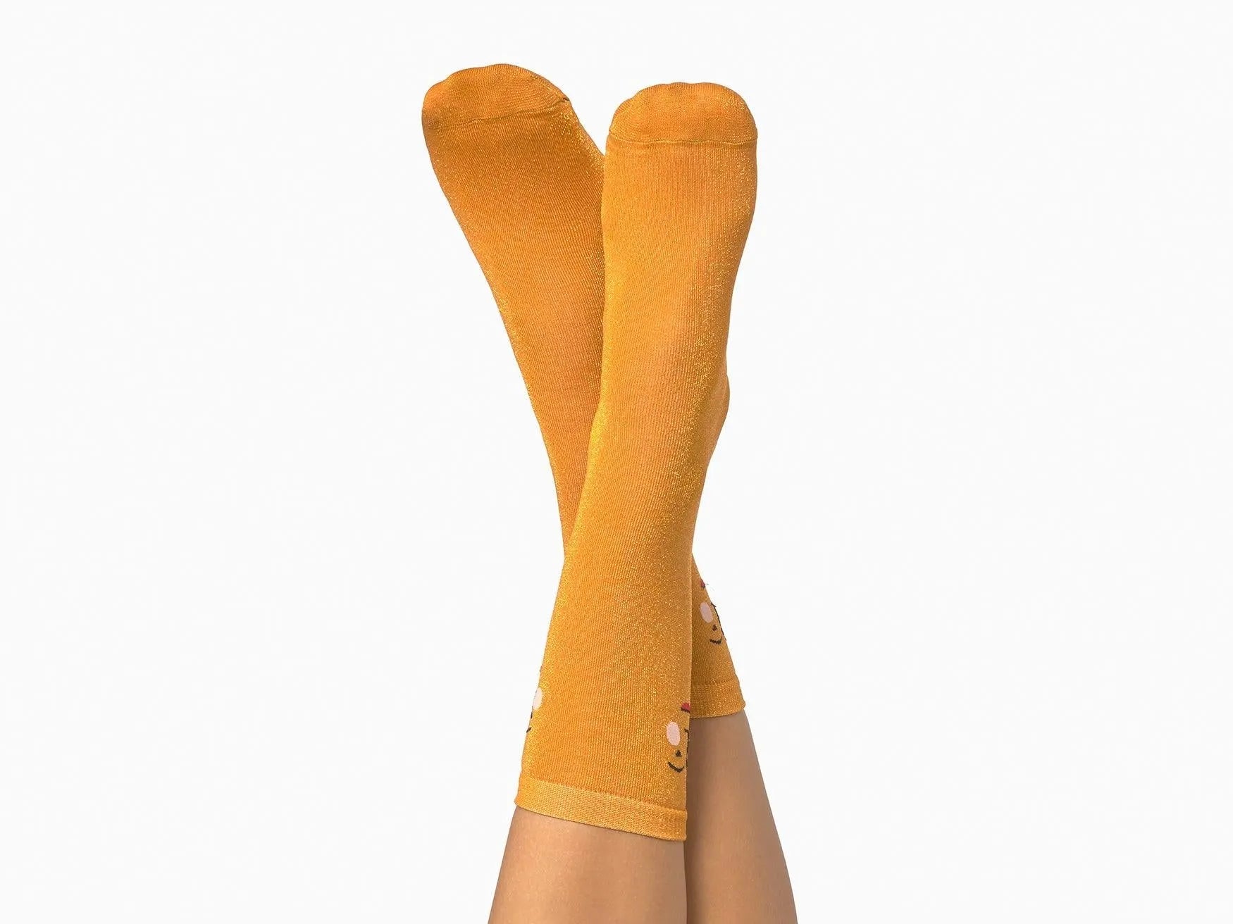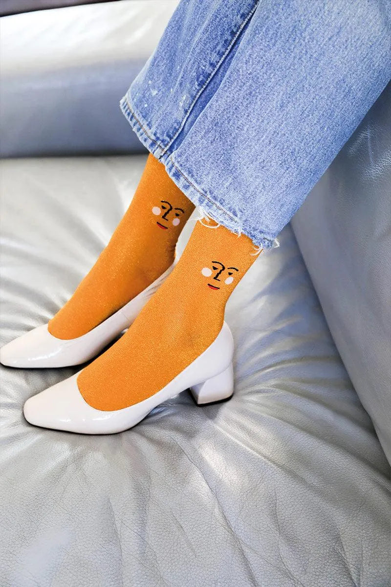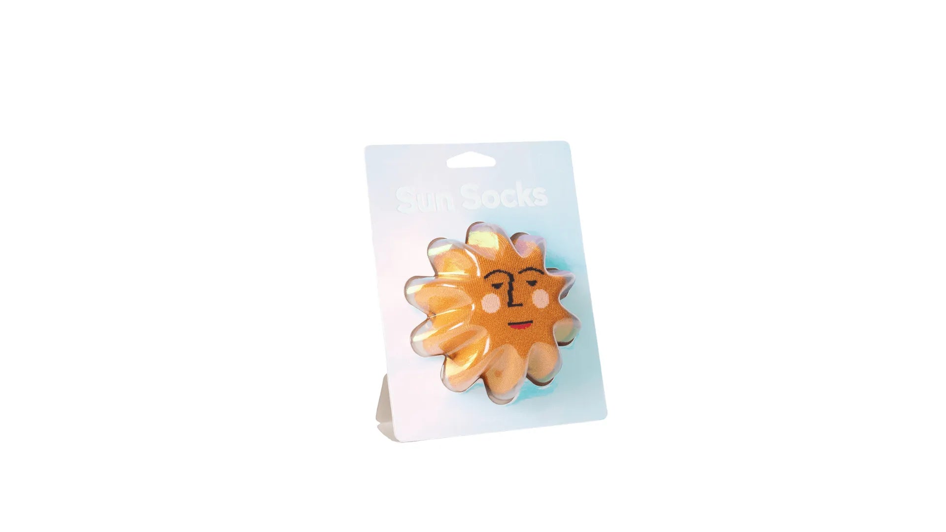 Ein Paar bequeme und lustige Socken in Form einer fröhlichen Sonne. Einheitsgröße.