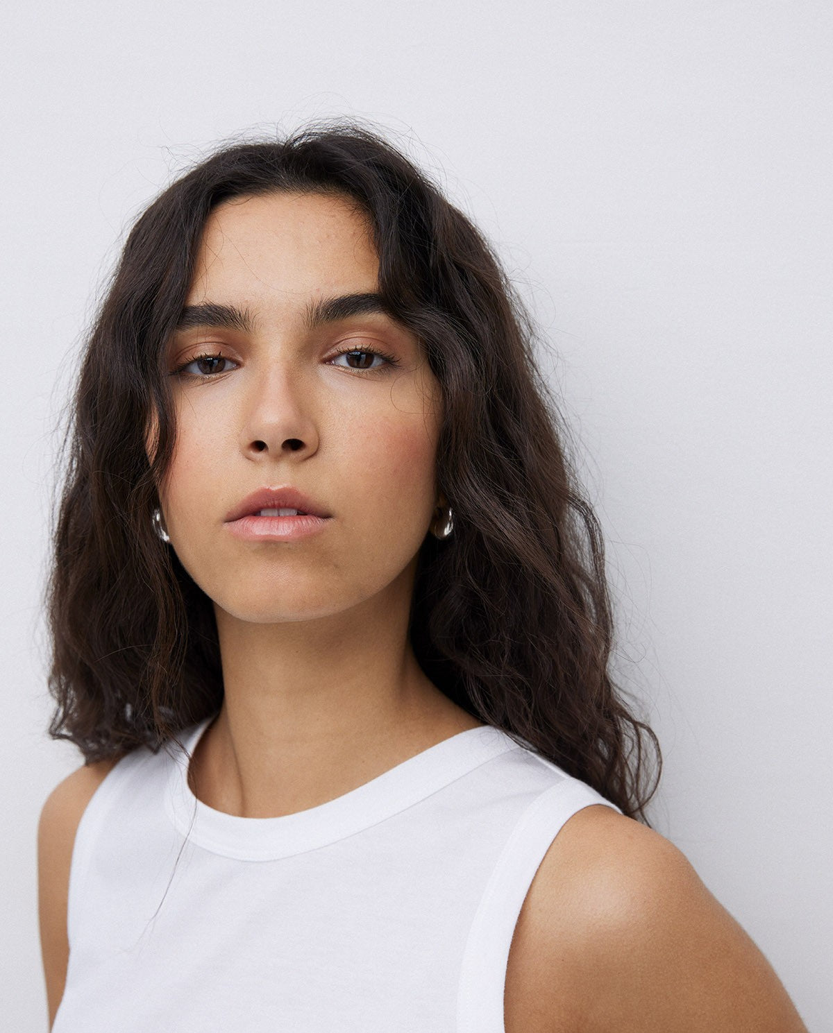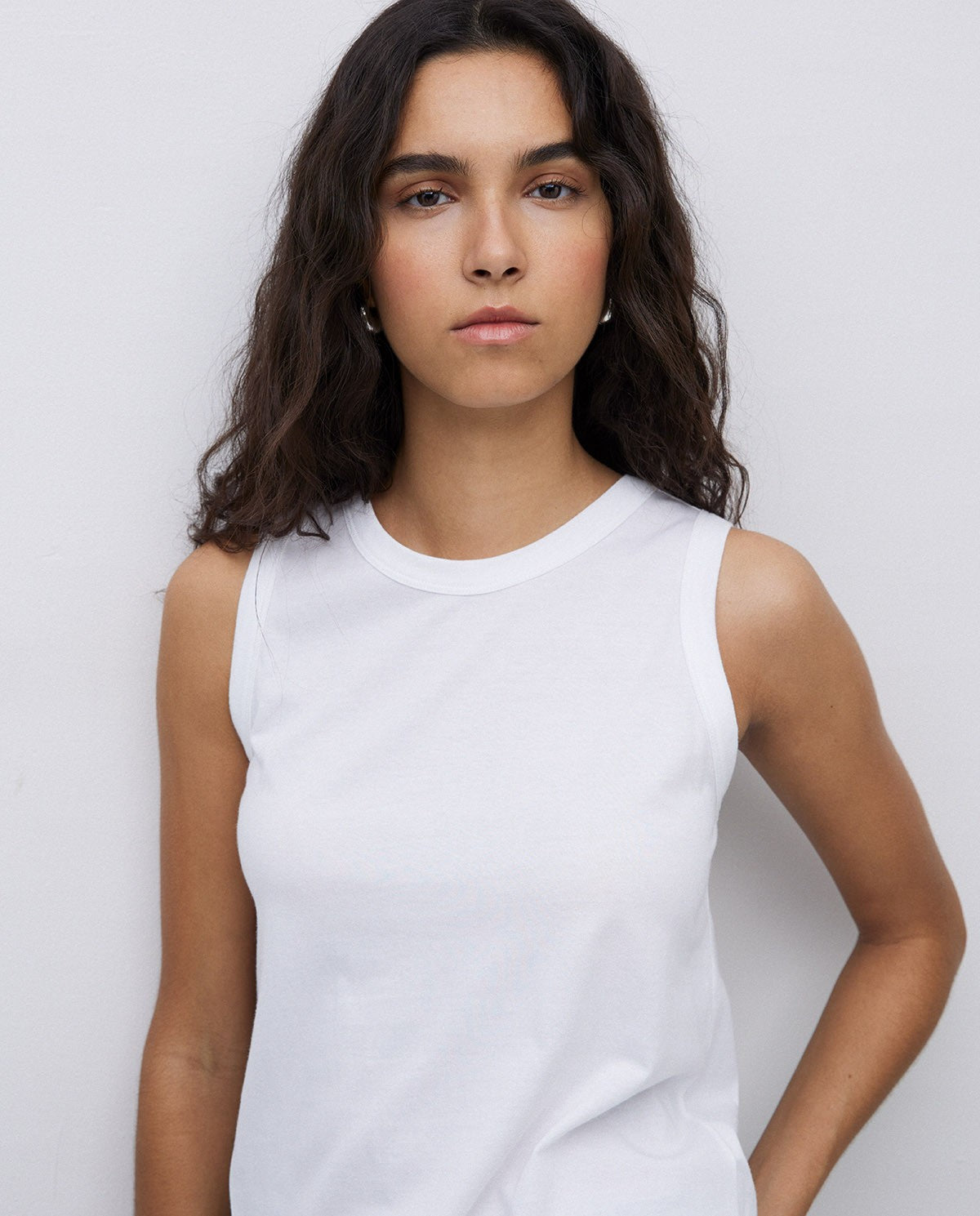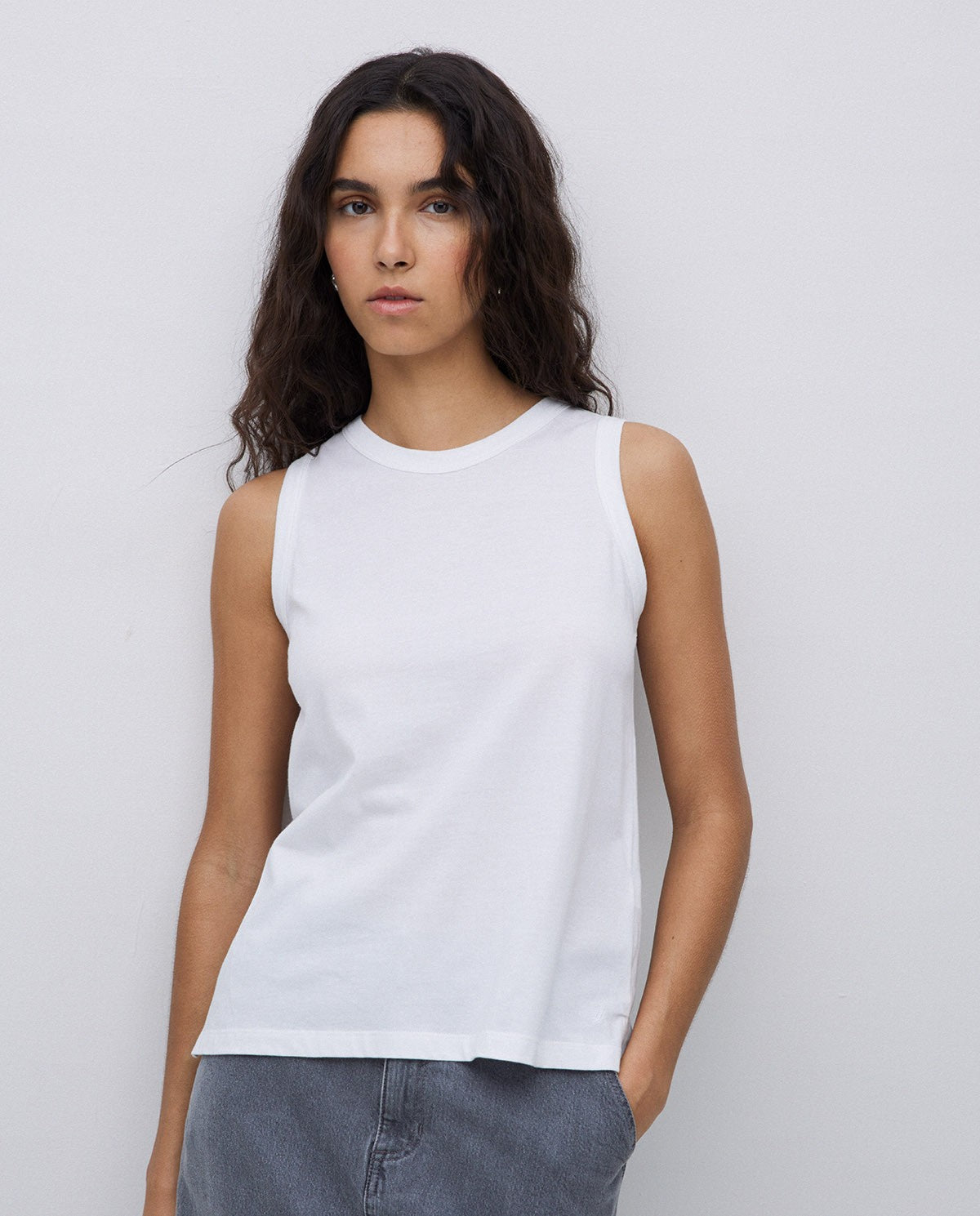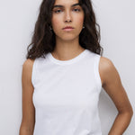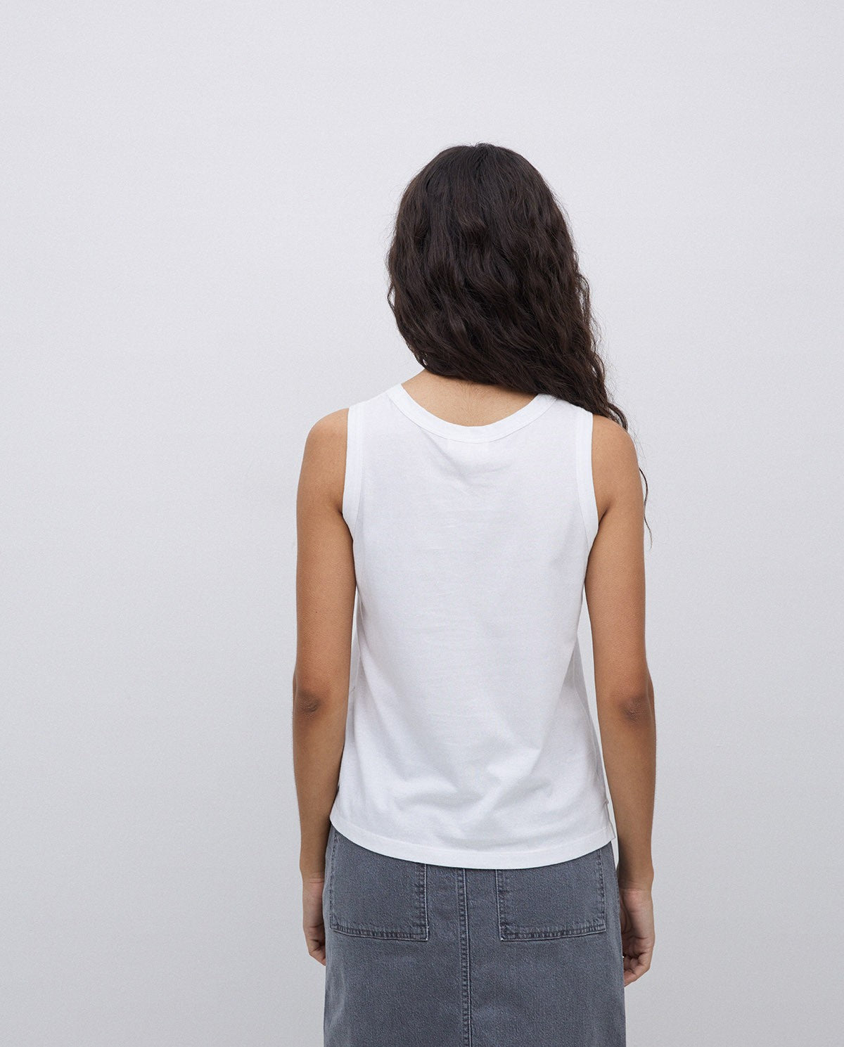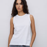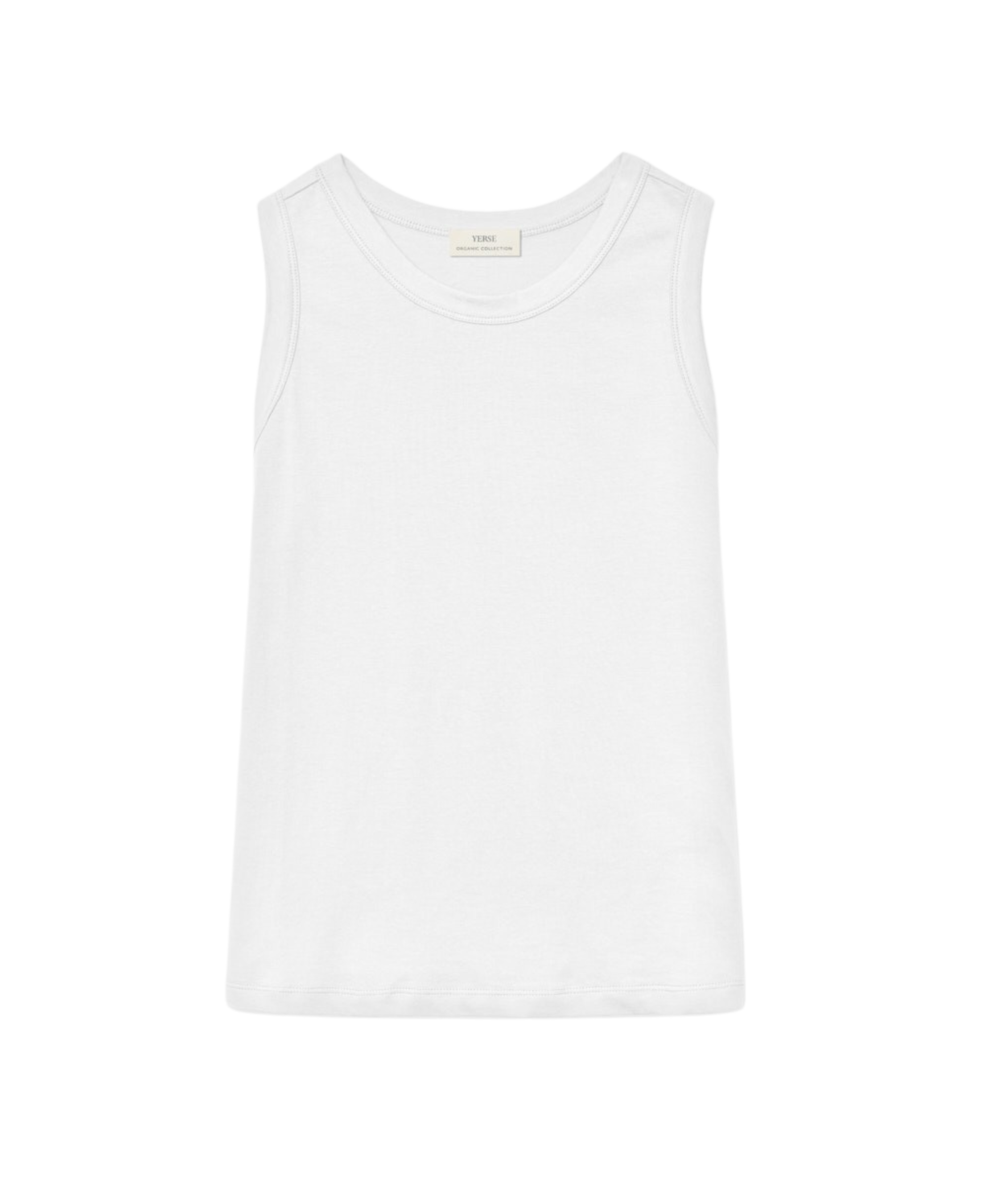 Basic-Oberteil. Stoff 100 % Bio-Baumwolle. Tinktur OEKO-TEX. Gerader Schnitt. Rundhalsausschnitt. Ärmellos. Schlitz unten. Gesticktes YERSE-Logo-Detail.