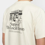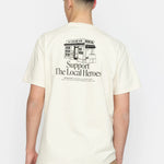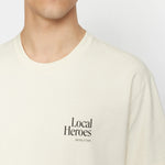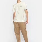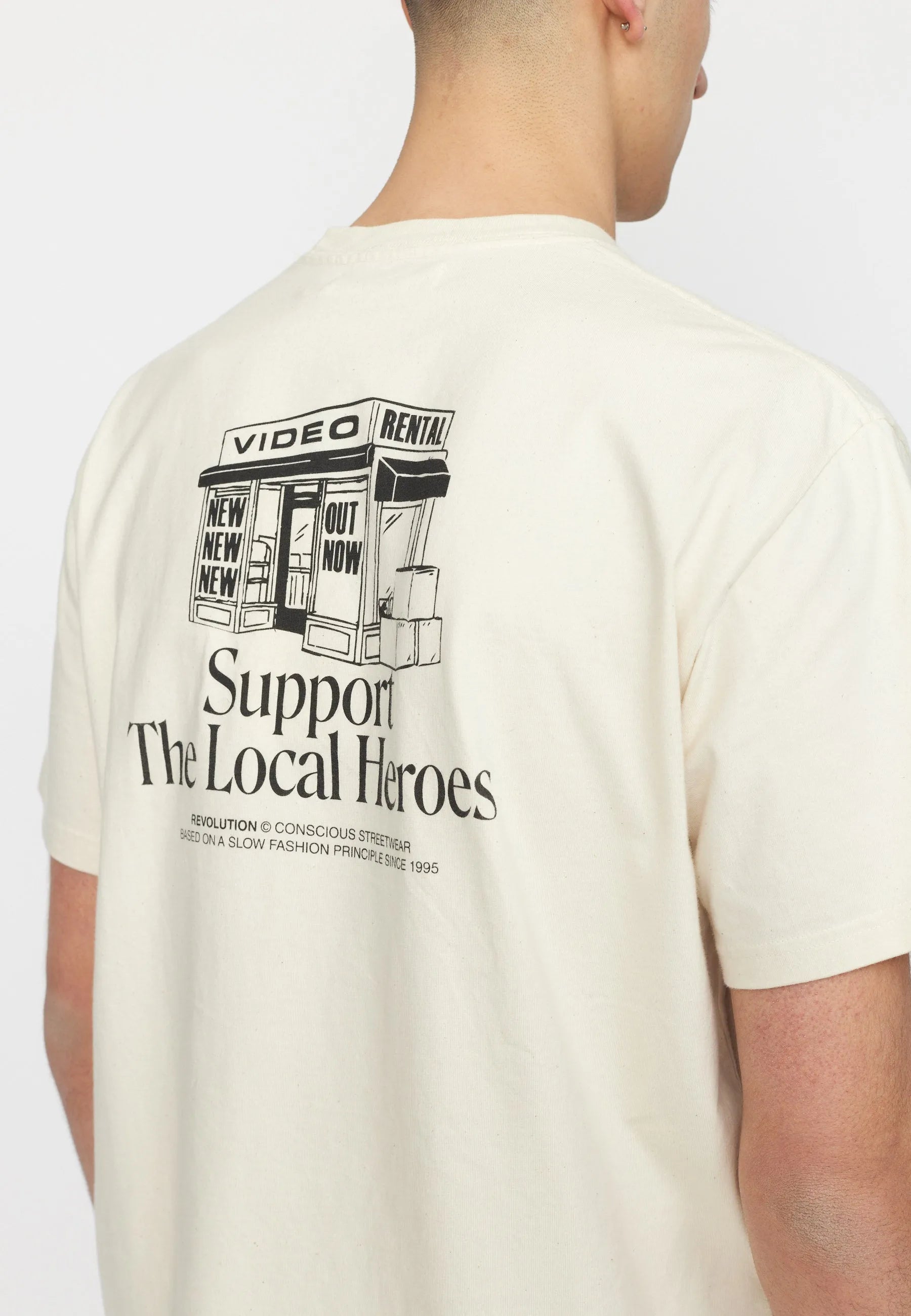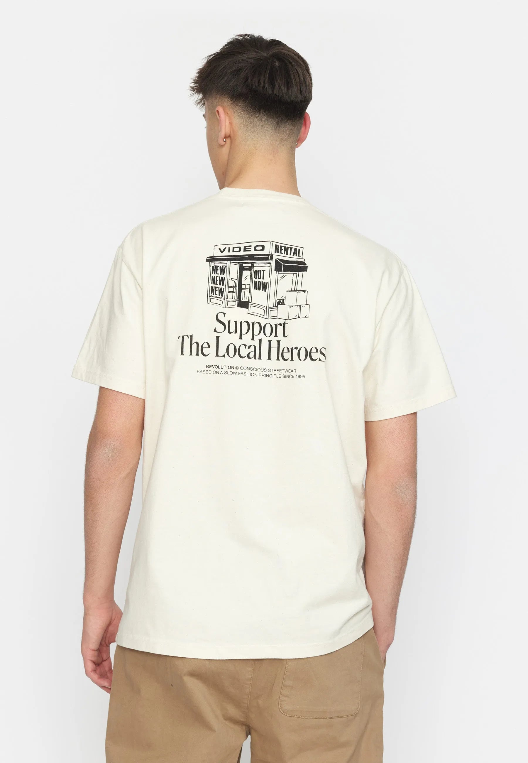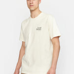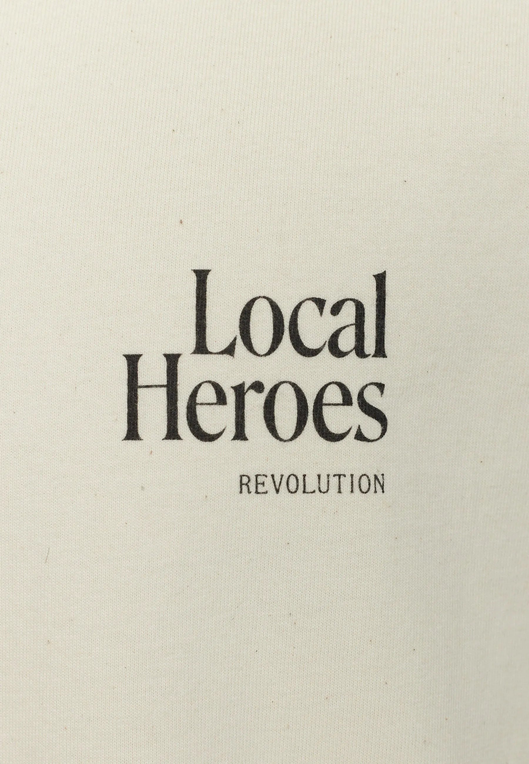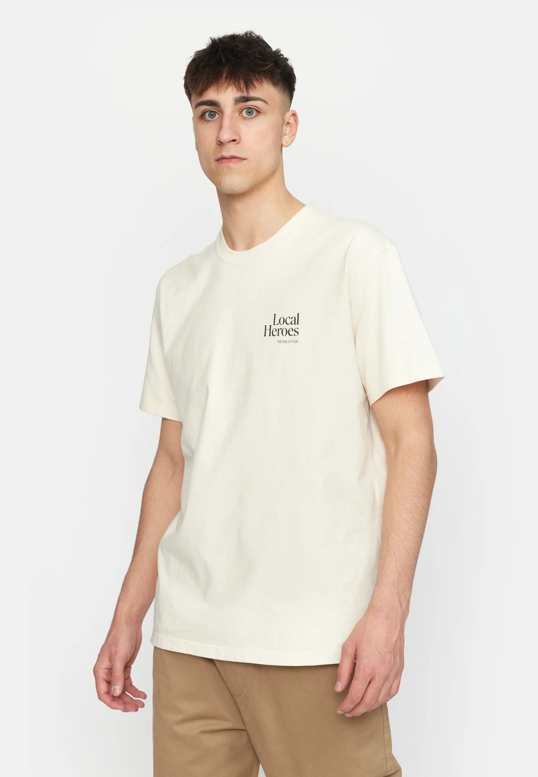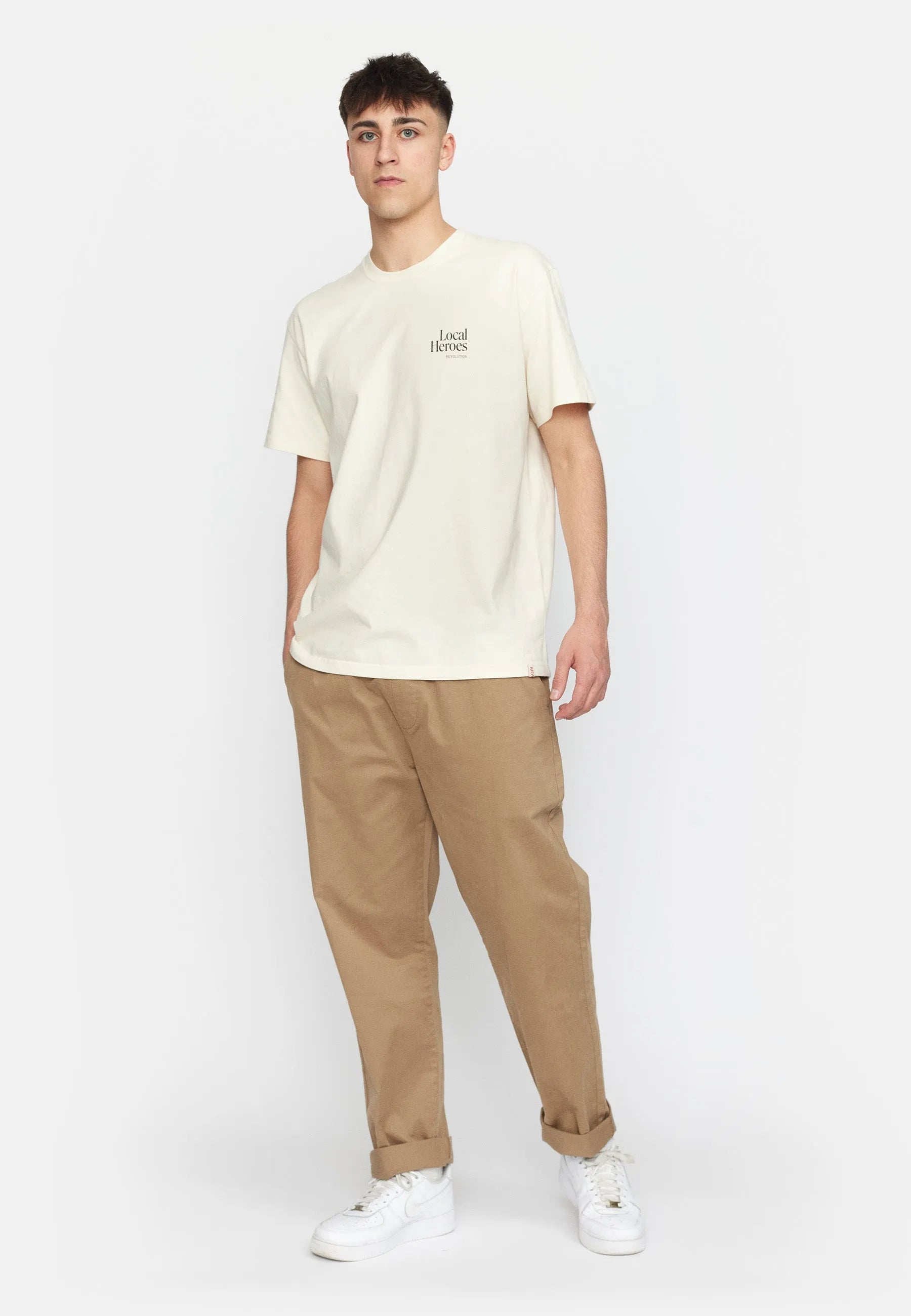 Loose-fitting, crew-neck, short-sleeved T-shirt made from 220 g/m² organic cotton jersey. The thick, crisp-feel knit ensures the T-shirt's stability and durability. The organic cotton is grown from non-genetically modified seeds, without chemical fertilizers or pesticides, which promotes biodiversity and has a lower ecological impact. The T-shirt features a small monochrome print on the chest, a large print in the center of the back, and a branded label at the bottom.