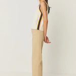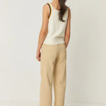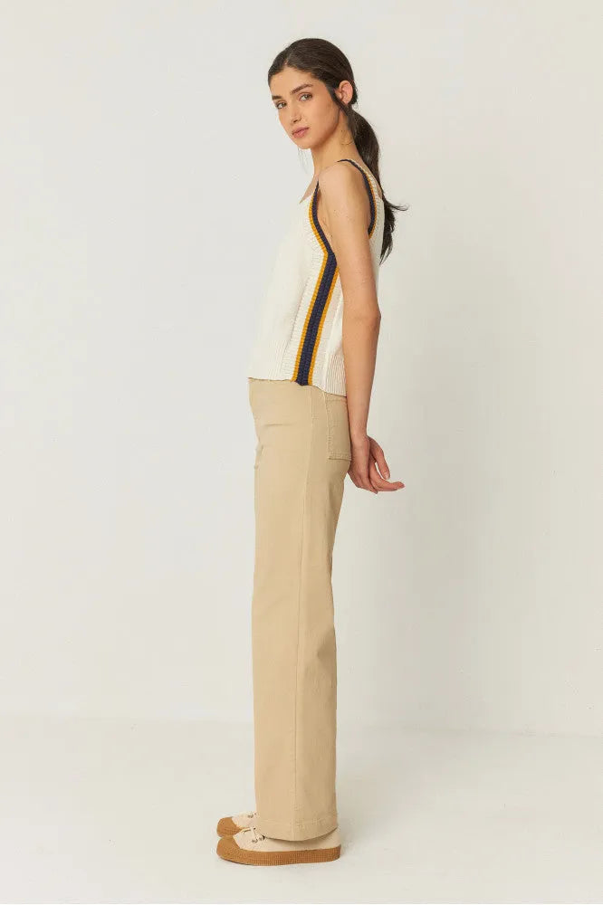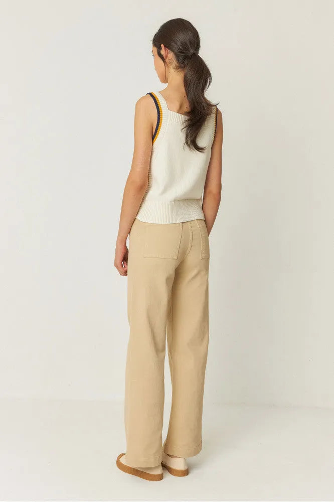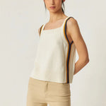 Organic cotton knit crop top with a square neckline, thin straps, contrasting ribbed details, and a slim fit.