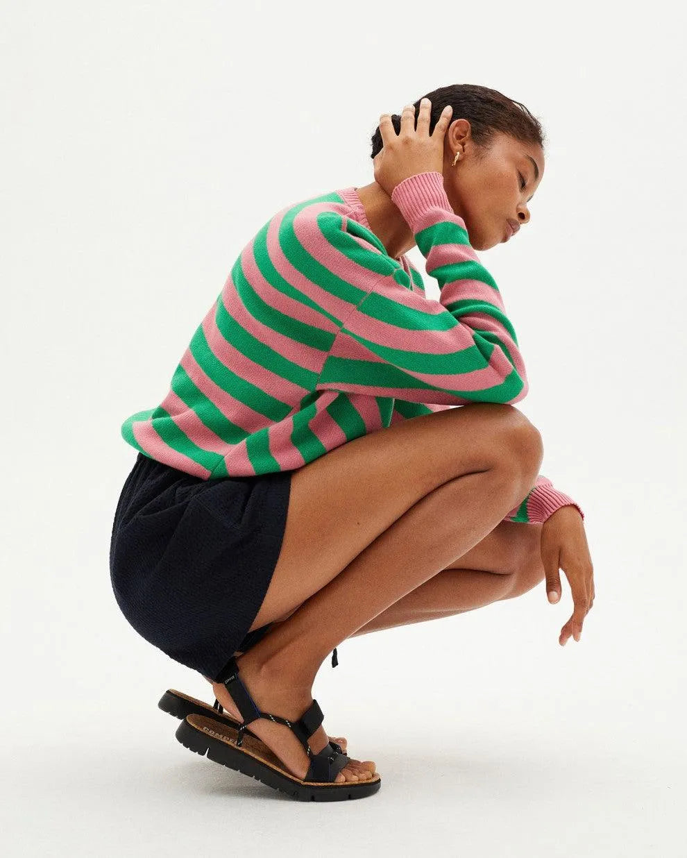 WIDE SHORT WITH RUBBER WAIST, SIDE POCKETS AND ADJUSTABLE WAIST CORD. MADE WITH SEERSUCKER FABRIC.