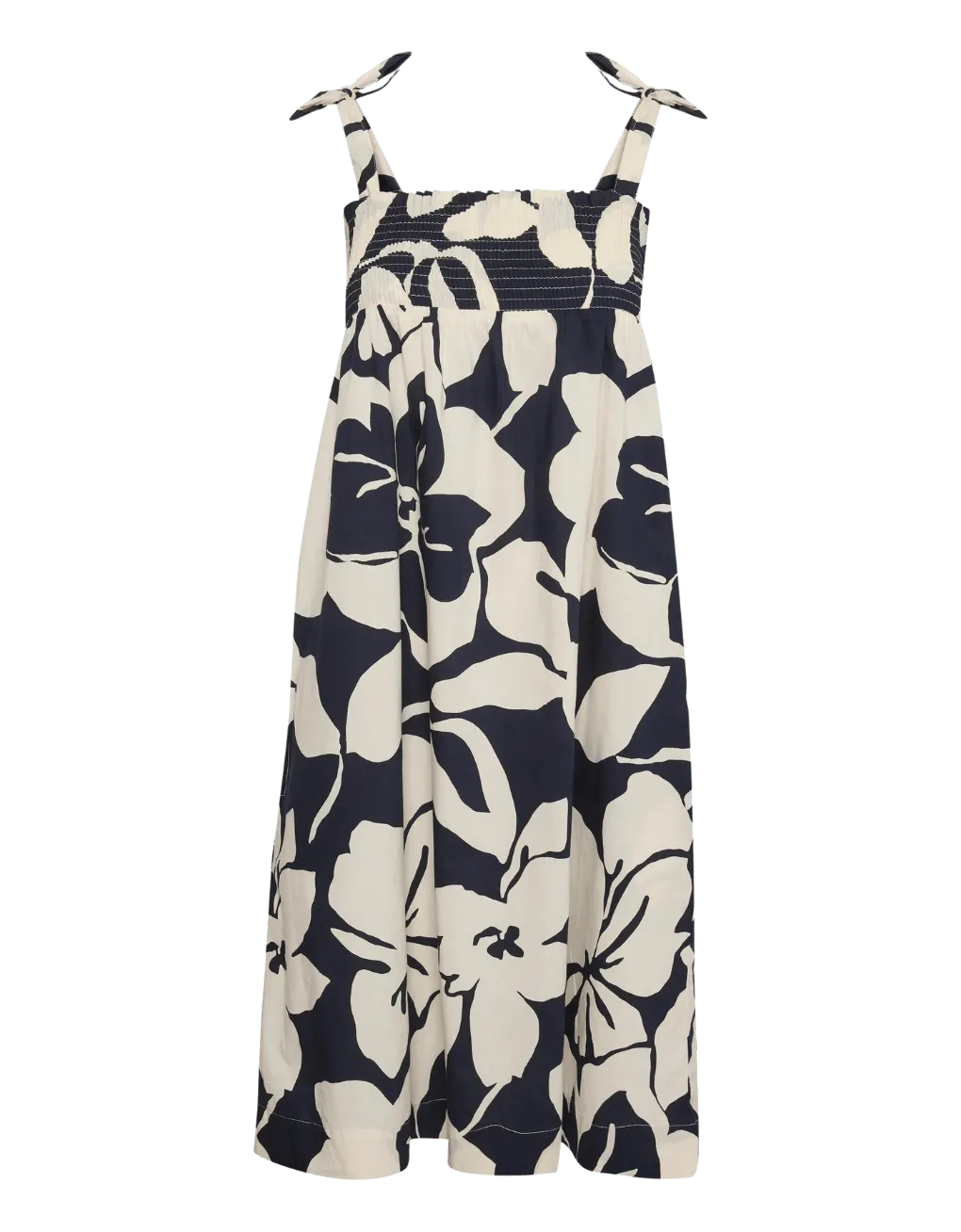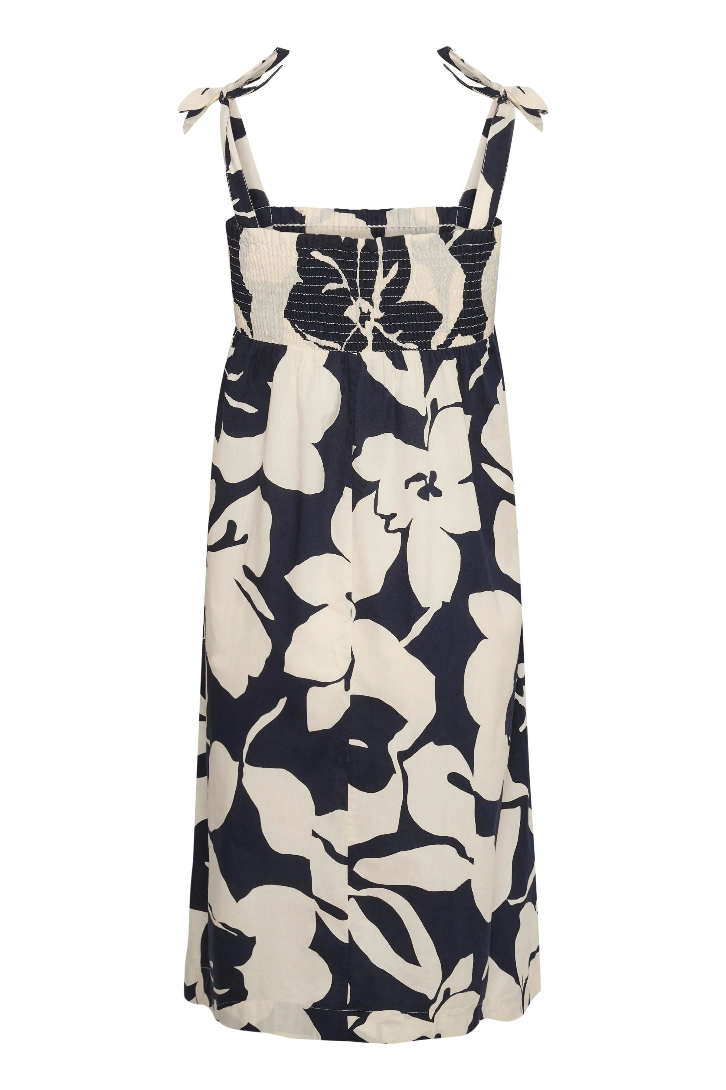 Dress with all-over print, bateau details on the chest and adjustable straps. The dress has a casual cut, is 100% cotton and is quality woven.