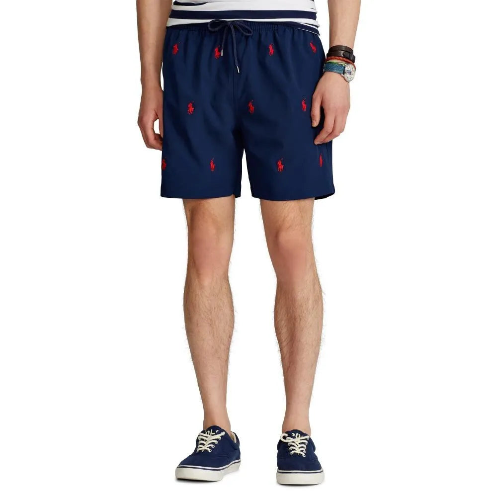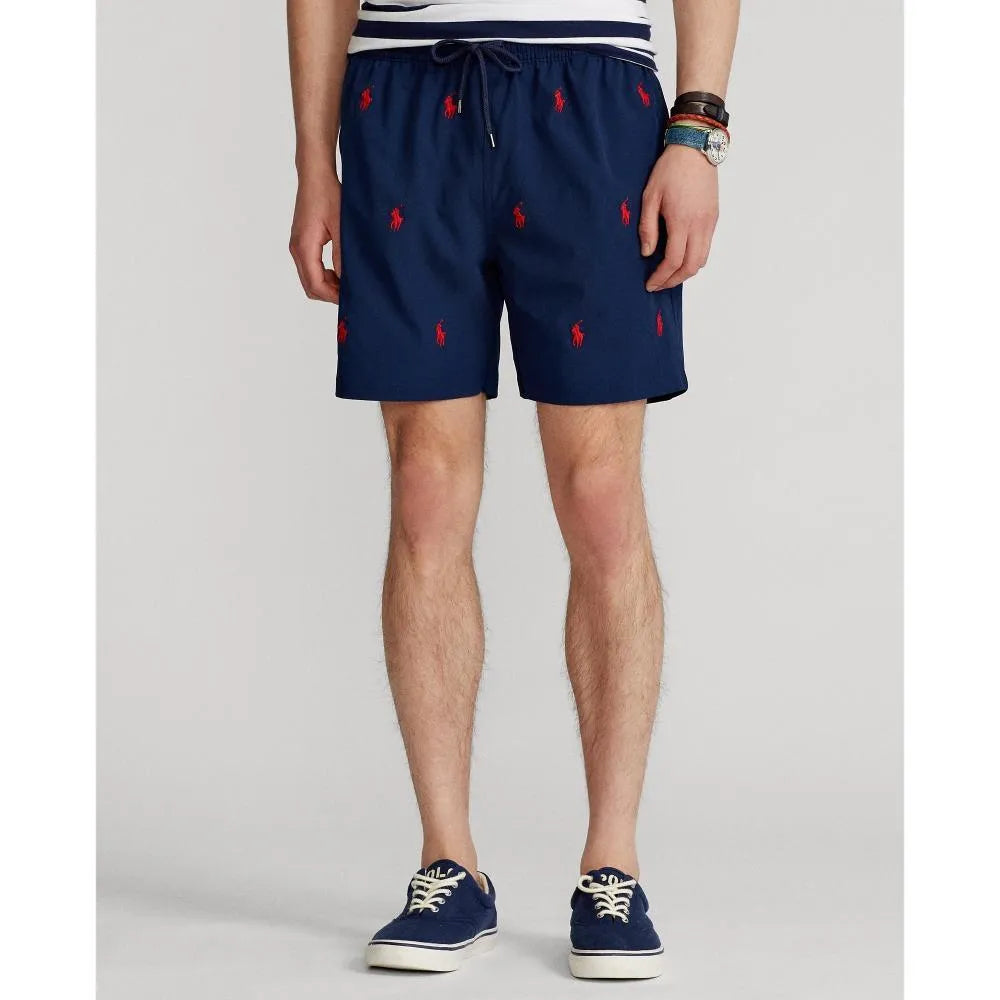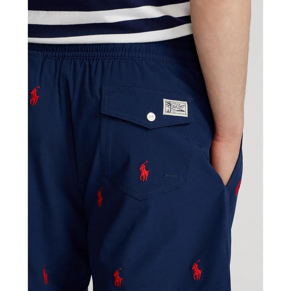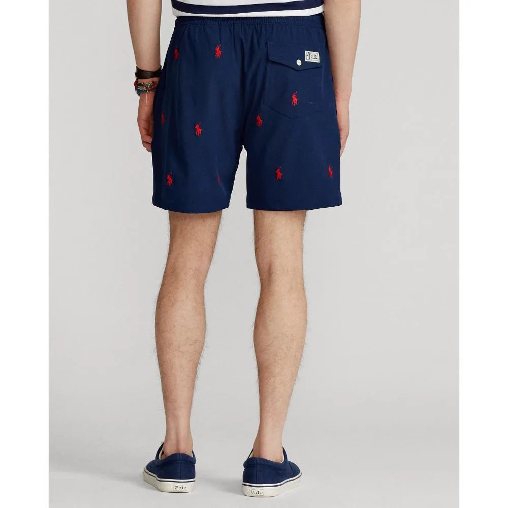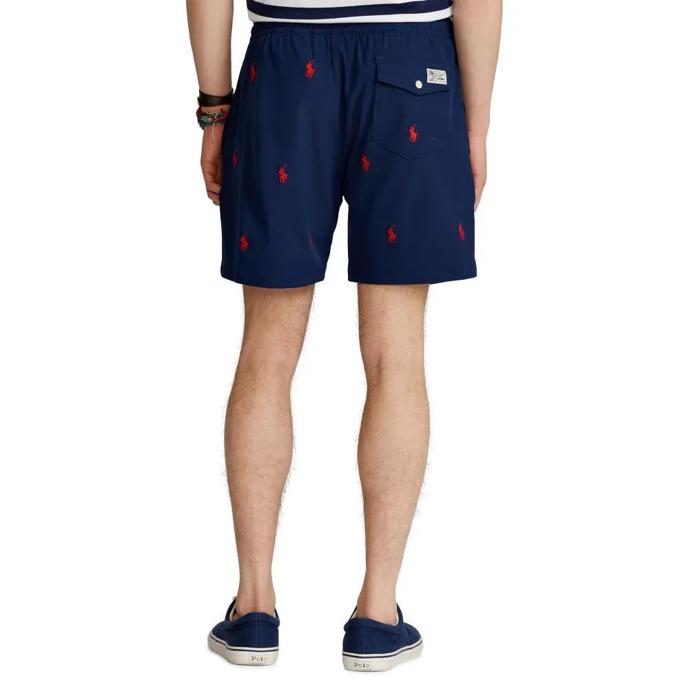 - Side pockets at the seam. "Polo Ralph Lauren Swimwear" label on the right back button pocket.