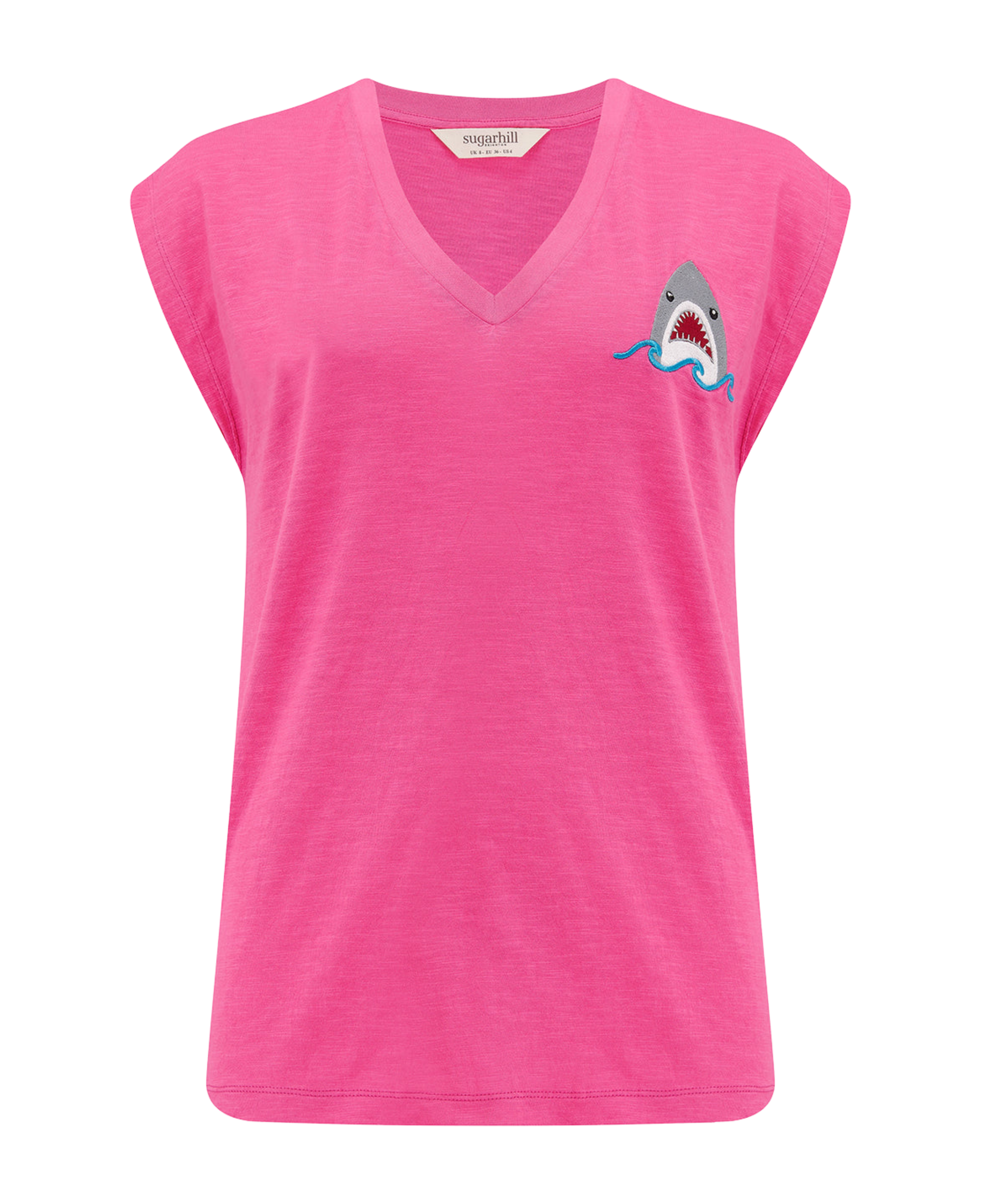 SUGARHILL Ariana Pink Fin-tastic Shark T-Shirt