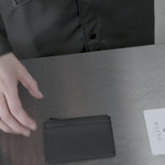 Zip Wallet is a unisex Rains item that features three outer card slots, one outer receipt slot, and a central zippered pocket for cash and coins. It's made from Rains' signature waterproof fabric with an embossed Rains logo.