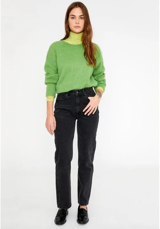 Green textured knit sweater. With a round neckline and long dropped sleeves. Detail of rib finishes. The model is 172cm tall and wears size S.
