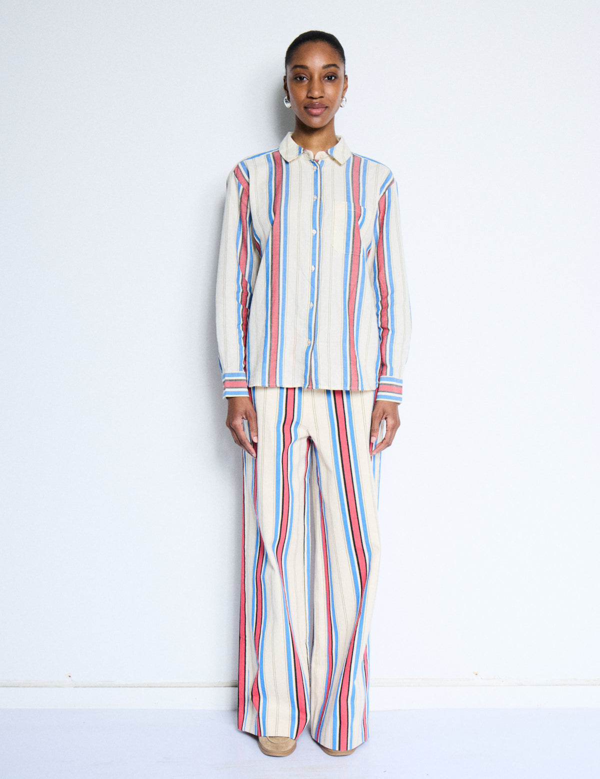 Camisa ICHI Fanni Blue + Red Stripes