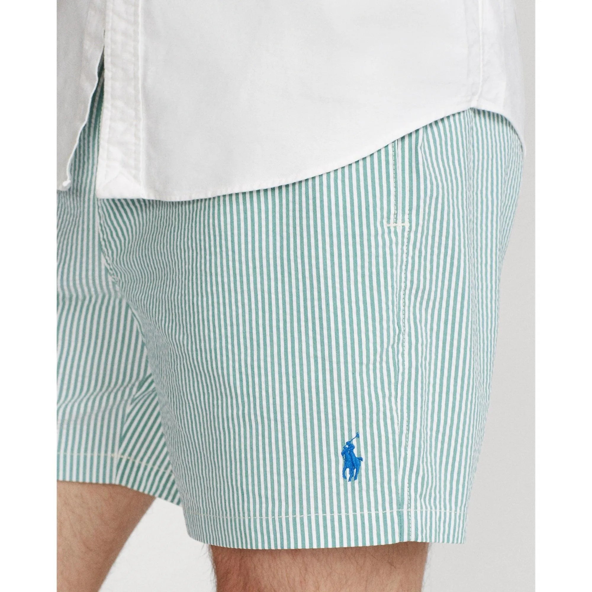 • Woven "Polo Ralph Lauren Swimwear" label on the back pocket.