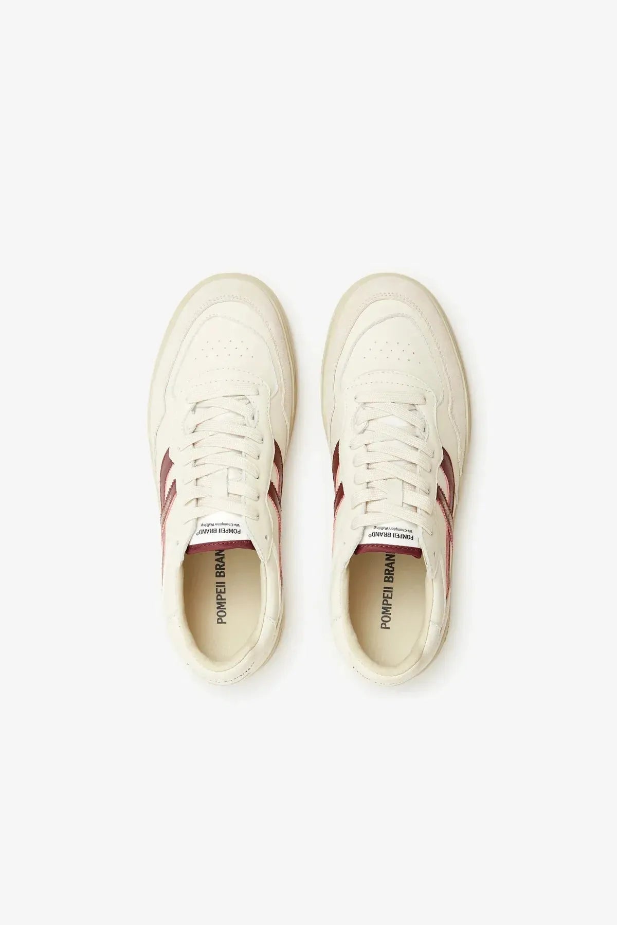 POMPEII Elan Pippa Leather Ecru Burgundy Sneakers