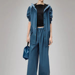 - Hood with drawstring and integrated visor
