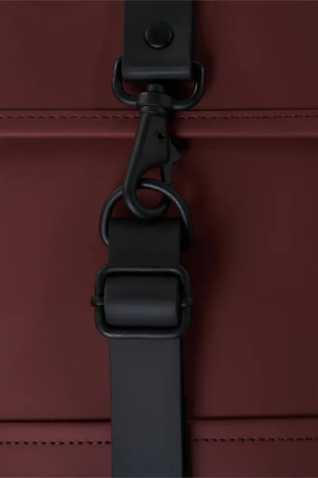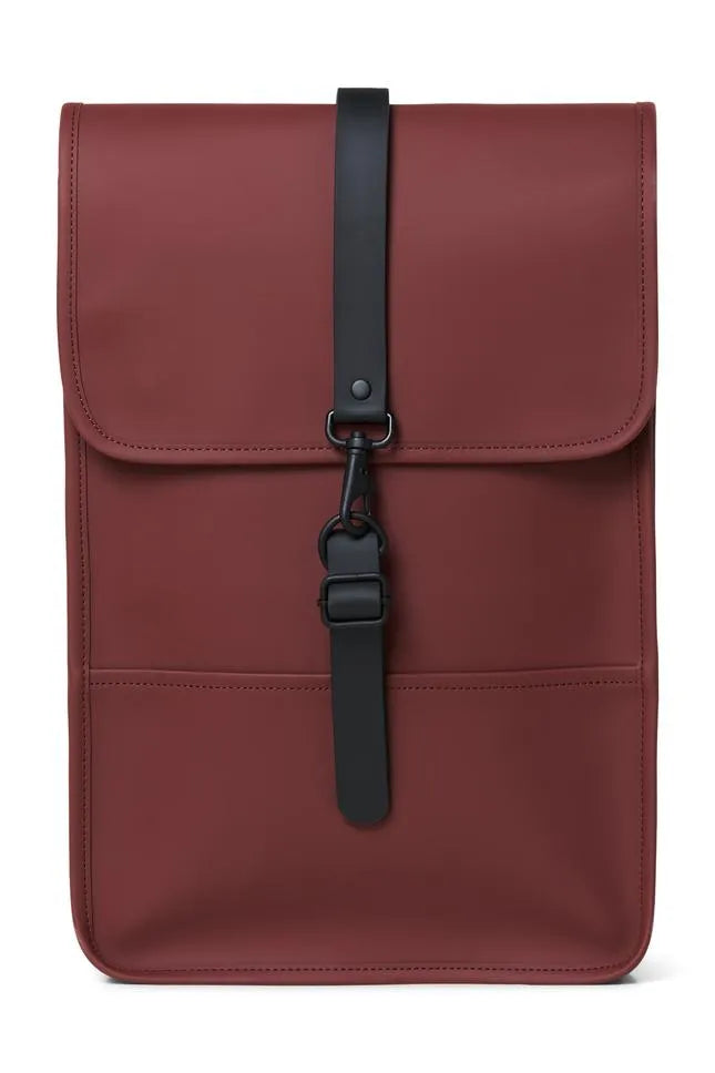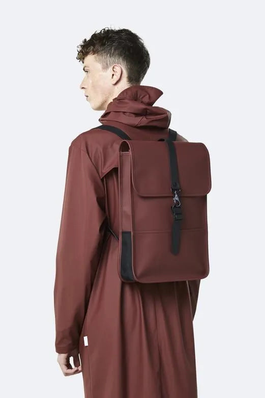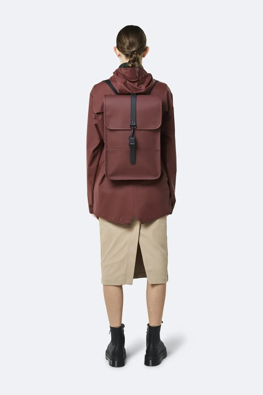 Mini Backpack is a smaller version of the classic Rains Backpack style. Made from a water-resistant fabric with a matte finish, this modern minimalist backpack features an interior laptop pocket, a spacious main compartment, and a hidden phone pocket on the back. Complete with magnetic clasps, carabiner details and adjustable straps.