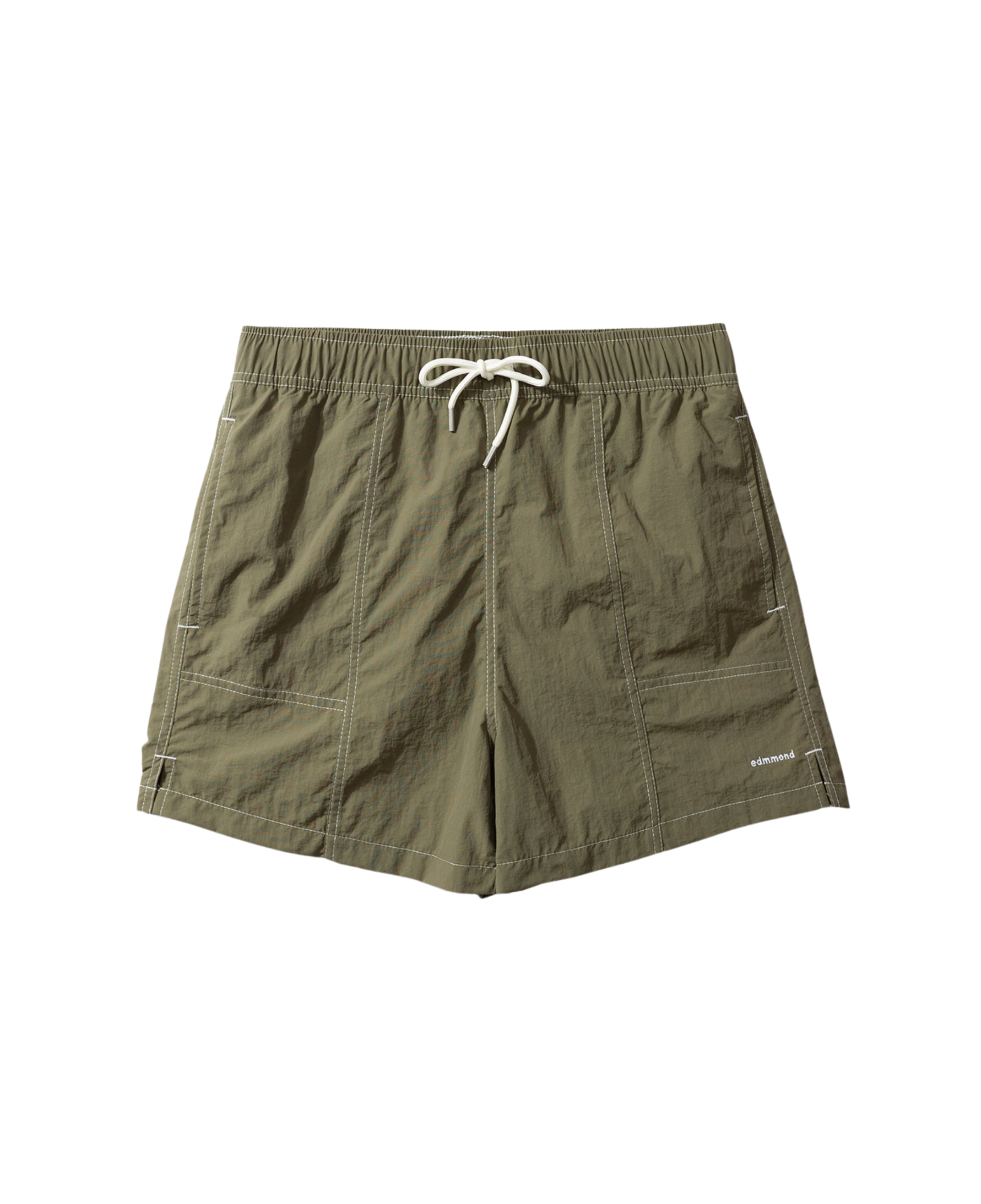 Bañador de nylon color caqui con pespuntes a contraste. Bolsillo parche en parte trasera derecha con mini logo bordado en esquina izquierda delantera y flag label. Confeccionada en 100% nylon. Fabricada en China.
