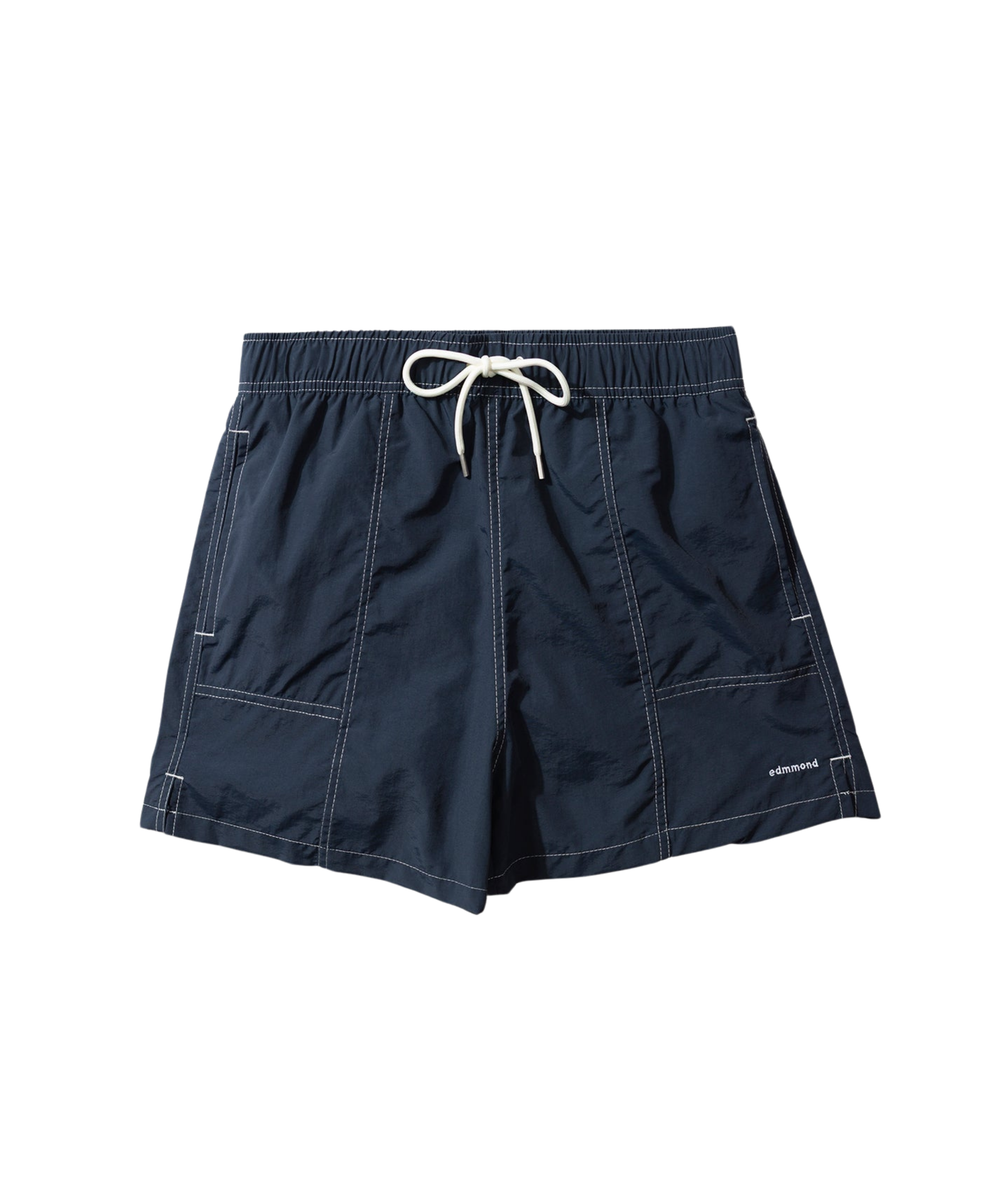 Bañador de nylon color azul marino con pespuntes a contraste. Bolsillo parche en parte trasera derecha con mini logo bordado en esquina izquierda delantera y flag label. Confeccionada en 100% nylon. Fabricada en China.