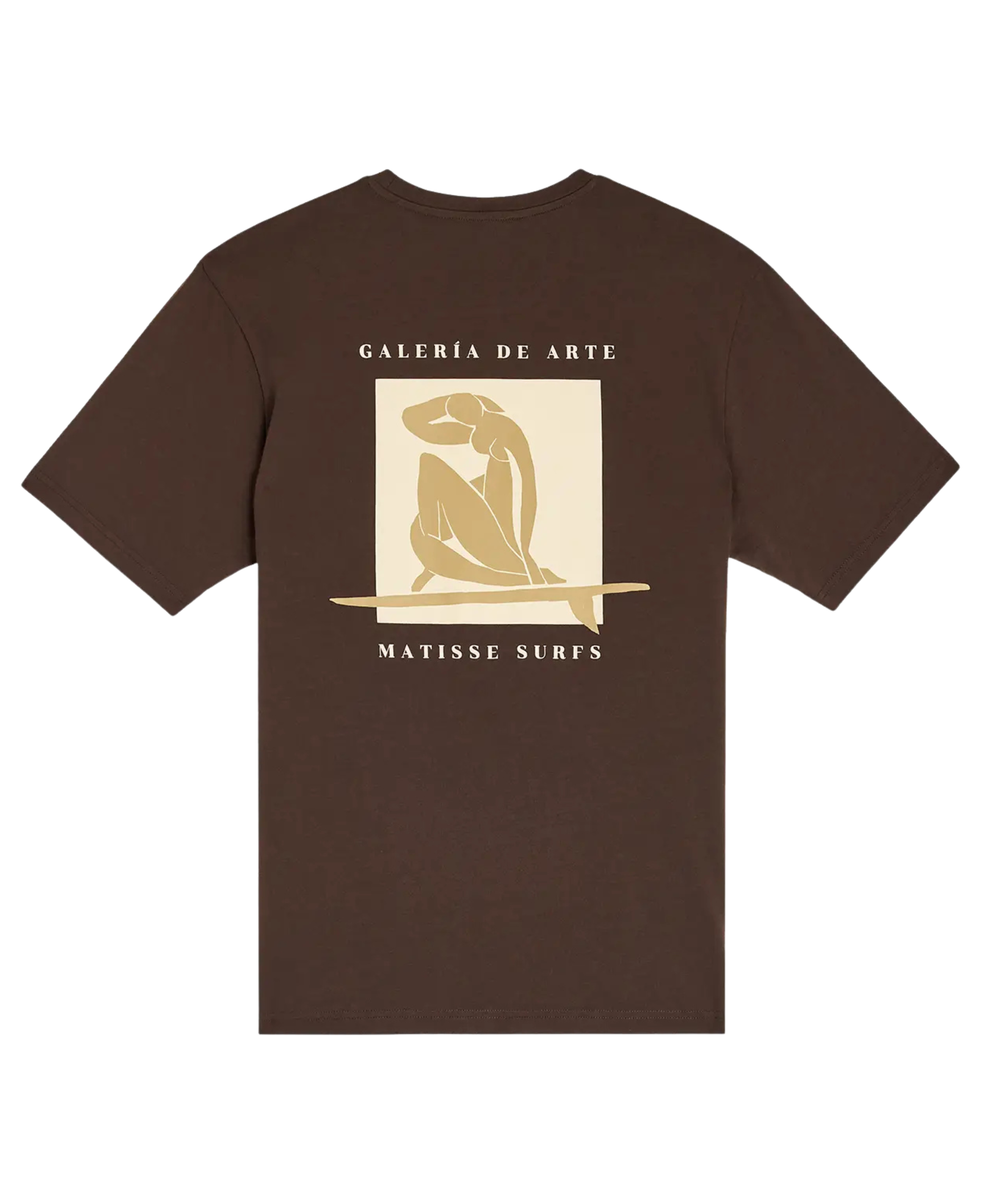 La Matisse Tee en color Chocolate es una camiseta de corte regular confeccionada en 100 % algodón orgánico certificado. Presenta un estampado gráfico que rinde homenaje a una obra de arte reconocida, combinando estilo, confort y valores responsables. Está producida en Portugal utilizando tintes Oeko-Tex no tóxicos, garantizando un acabado seguro y de calidad.