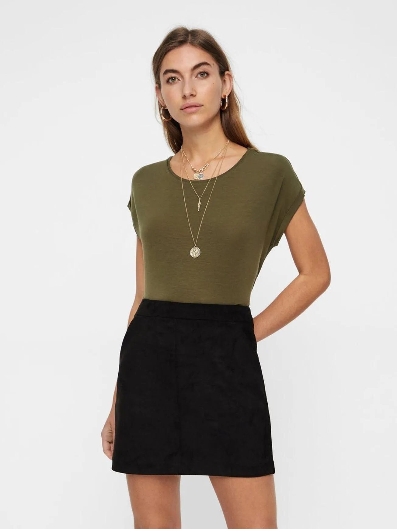 Basic short-sleeved top from the VERO MODA AWARE collection. AWARE by VERO MODA is a more sustainable collection of attractive pieces, designed around magnificent ecological materials that reduce the amount of natural resources used during production.