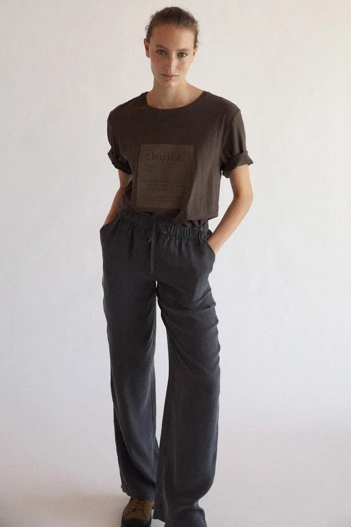 Women's T-shirt with round neck, short sleeves and text on the front. Made of sustainable materials.