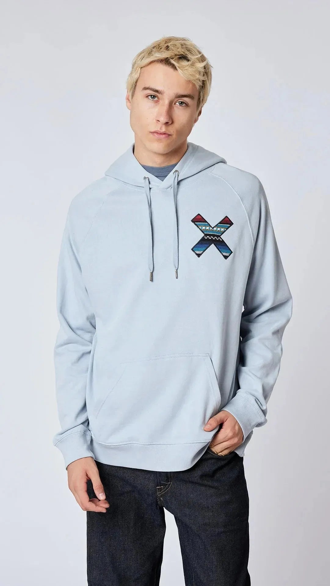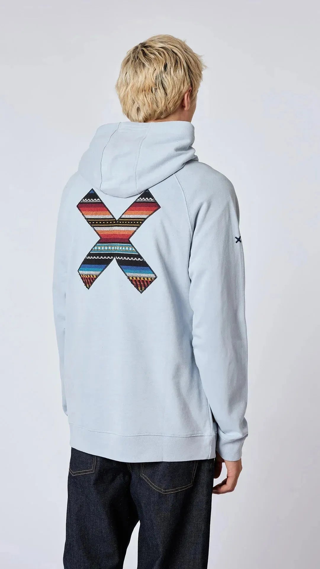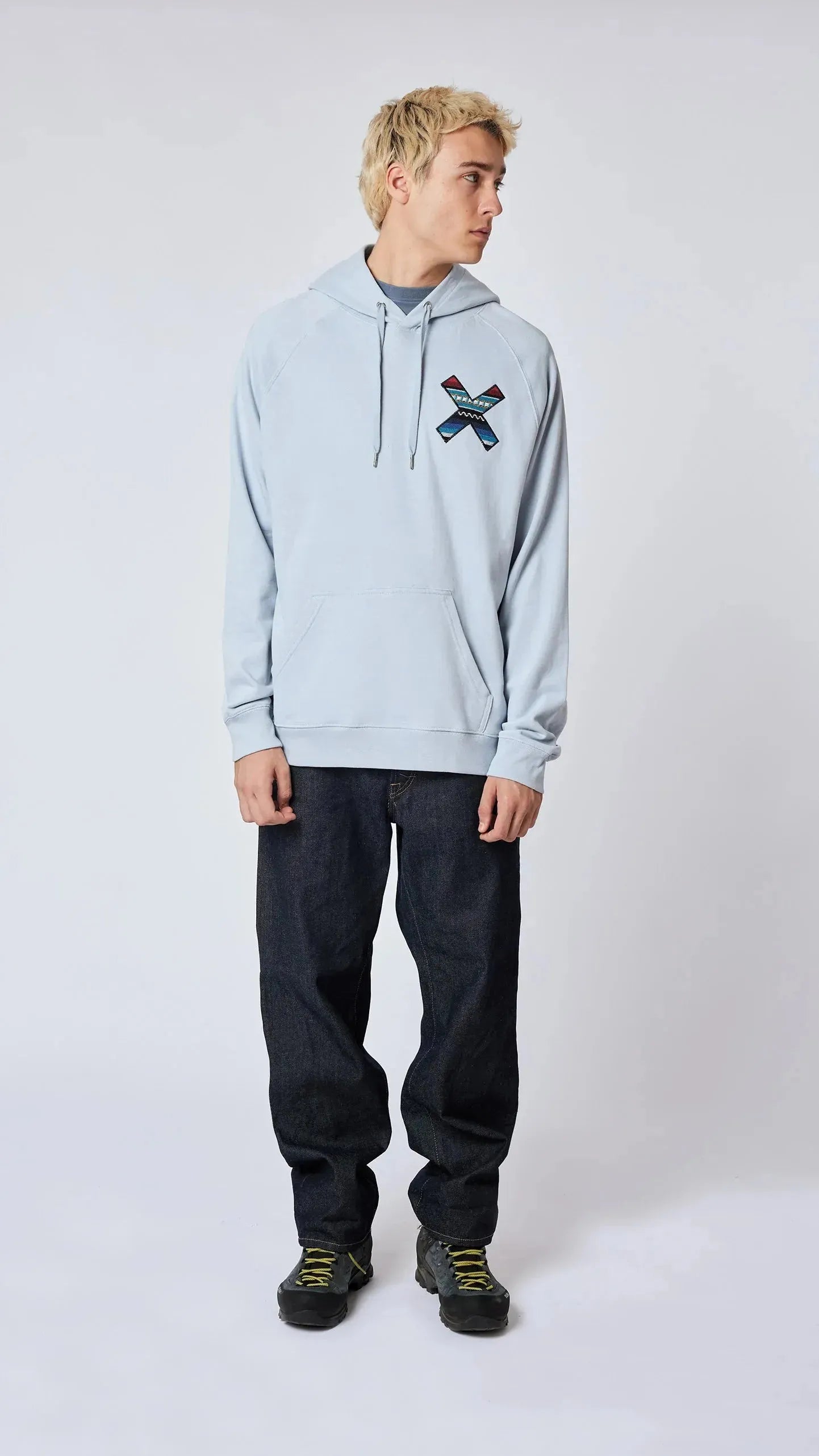 The Hoodie with classic embroidered X from Blue Banana: front on the chest and back on the back. Lower center front pocket with opening on both sides. Made with 100% organic cotton and regular fit cut.