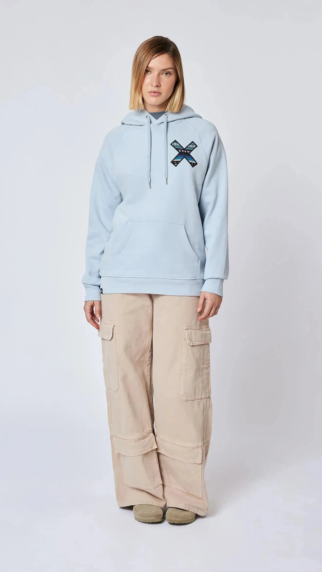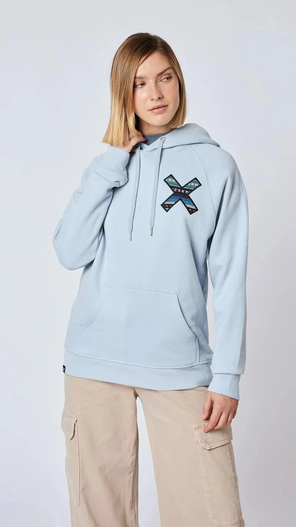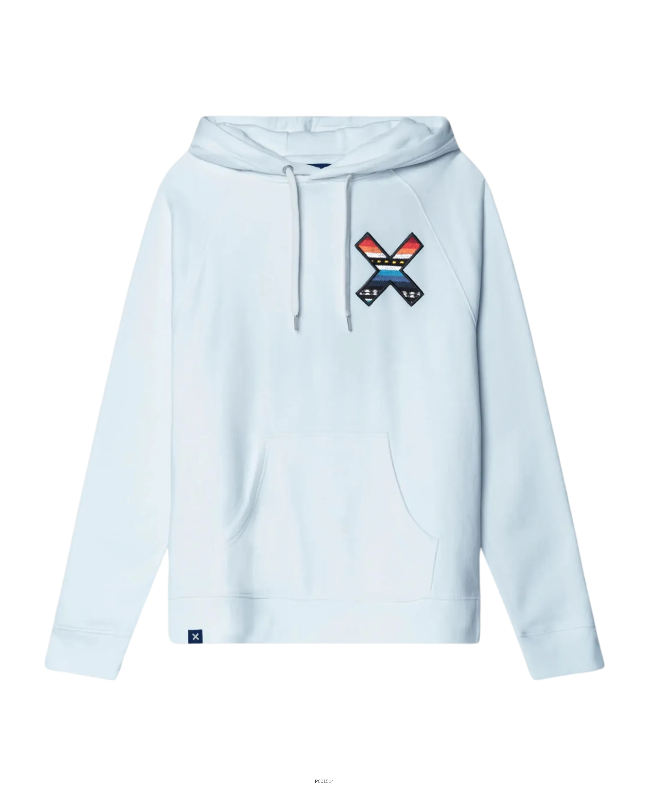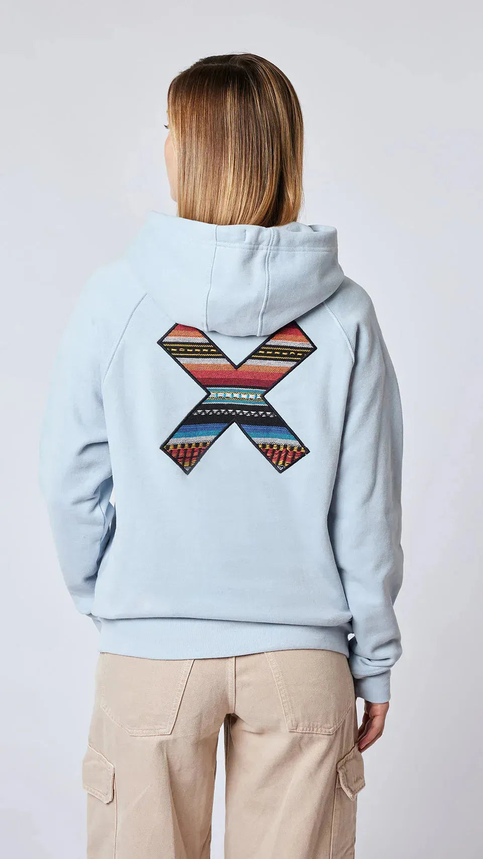 The Hoodie with classic embroidered X from Blue Banana: front on the chest and back on the back. Lower center front pocket with opening on both sides. Made with 100% organic cotton and regular fit cut.
