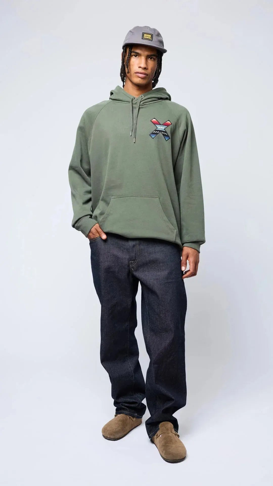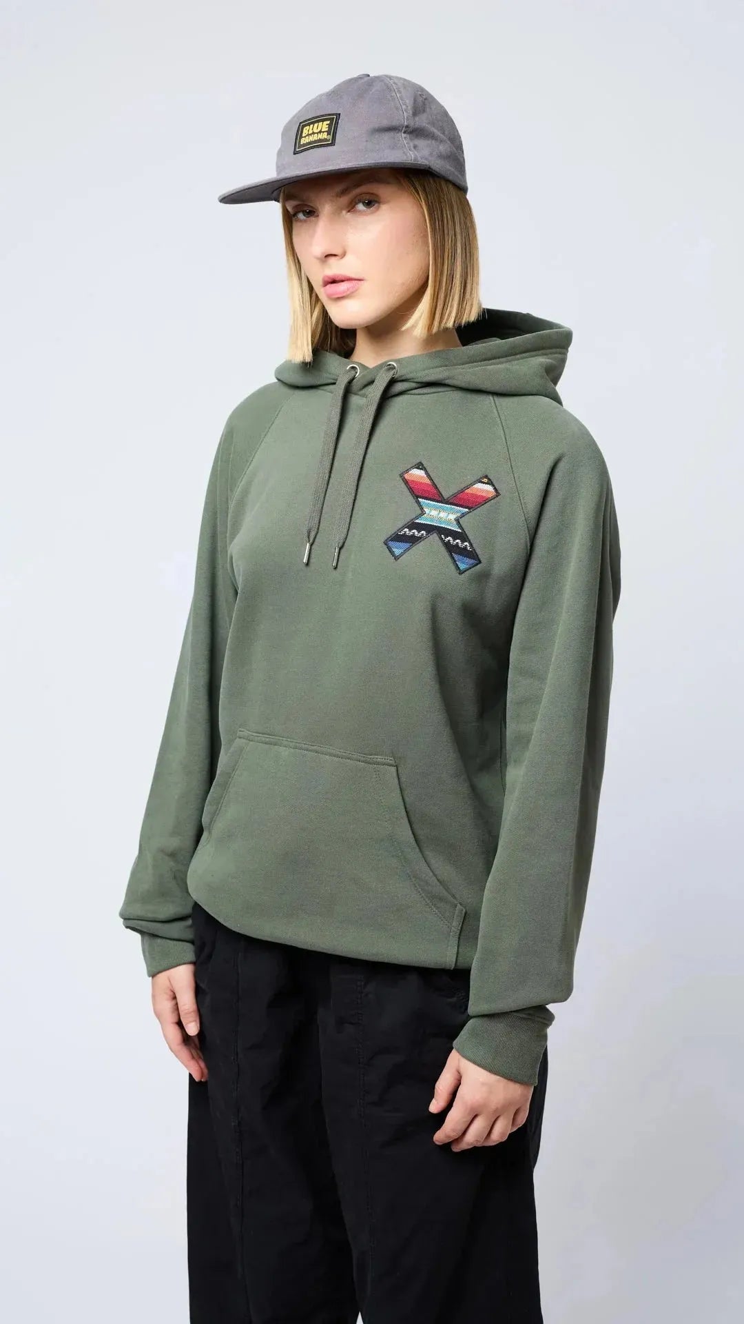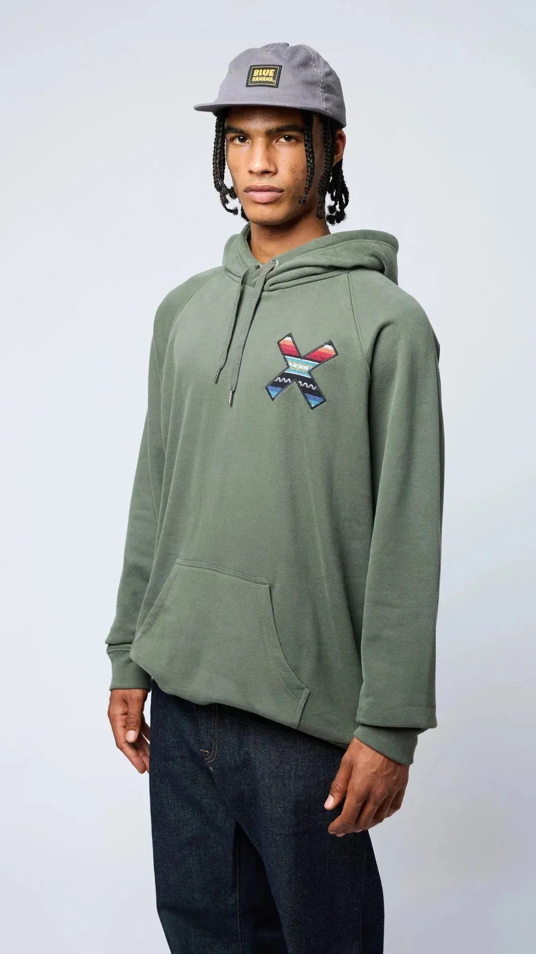 The Hoodie with classic embroidered X from Blue Banana: front on the chest and back on the back. Lower center front pocket with opening on both sides. Made with 100% organic cotton and regular fit cut.