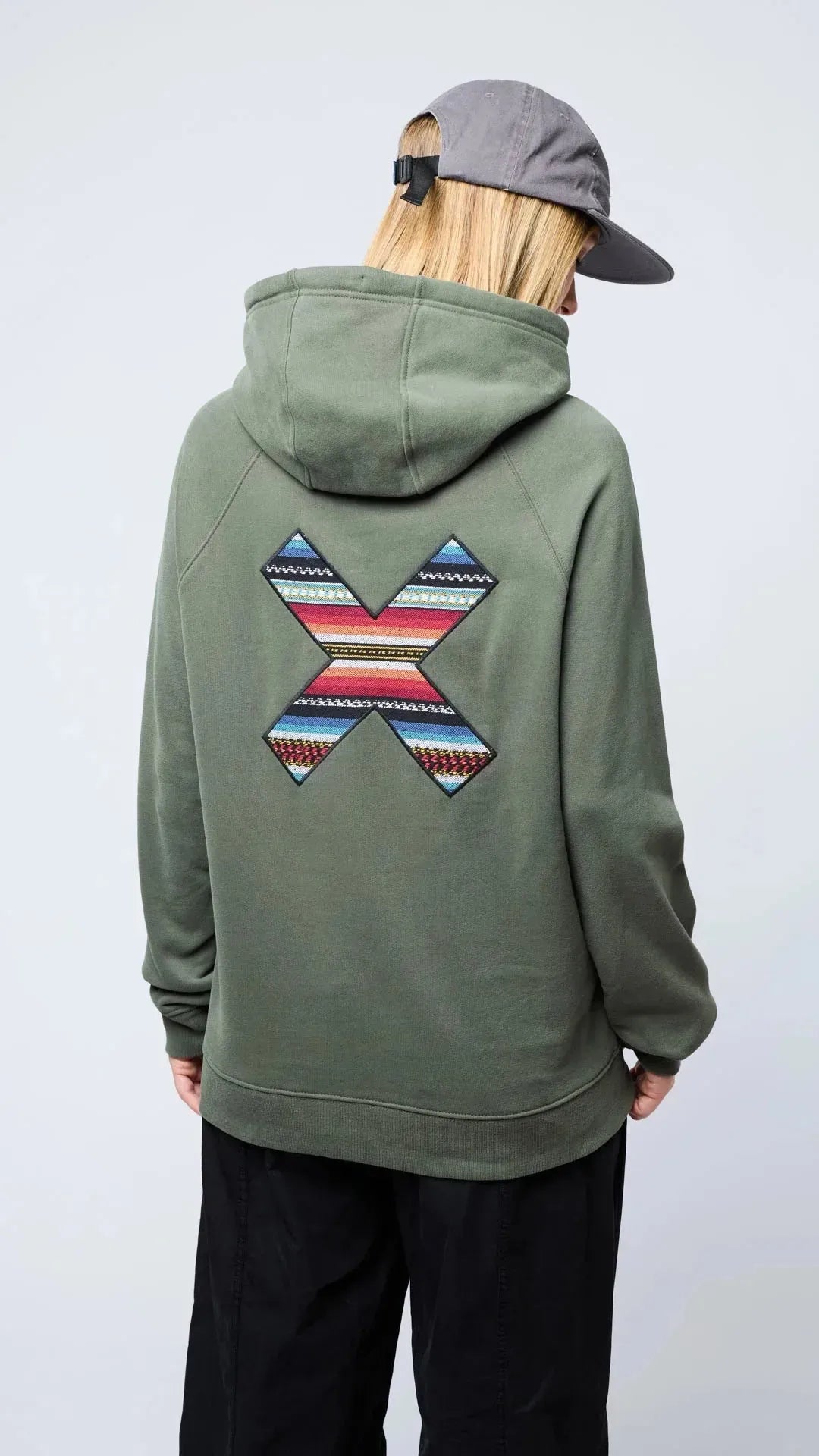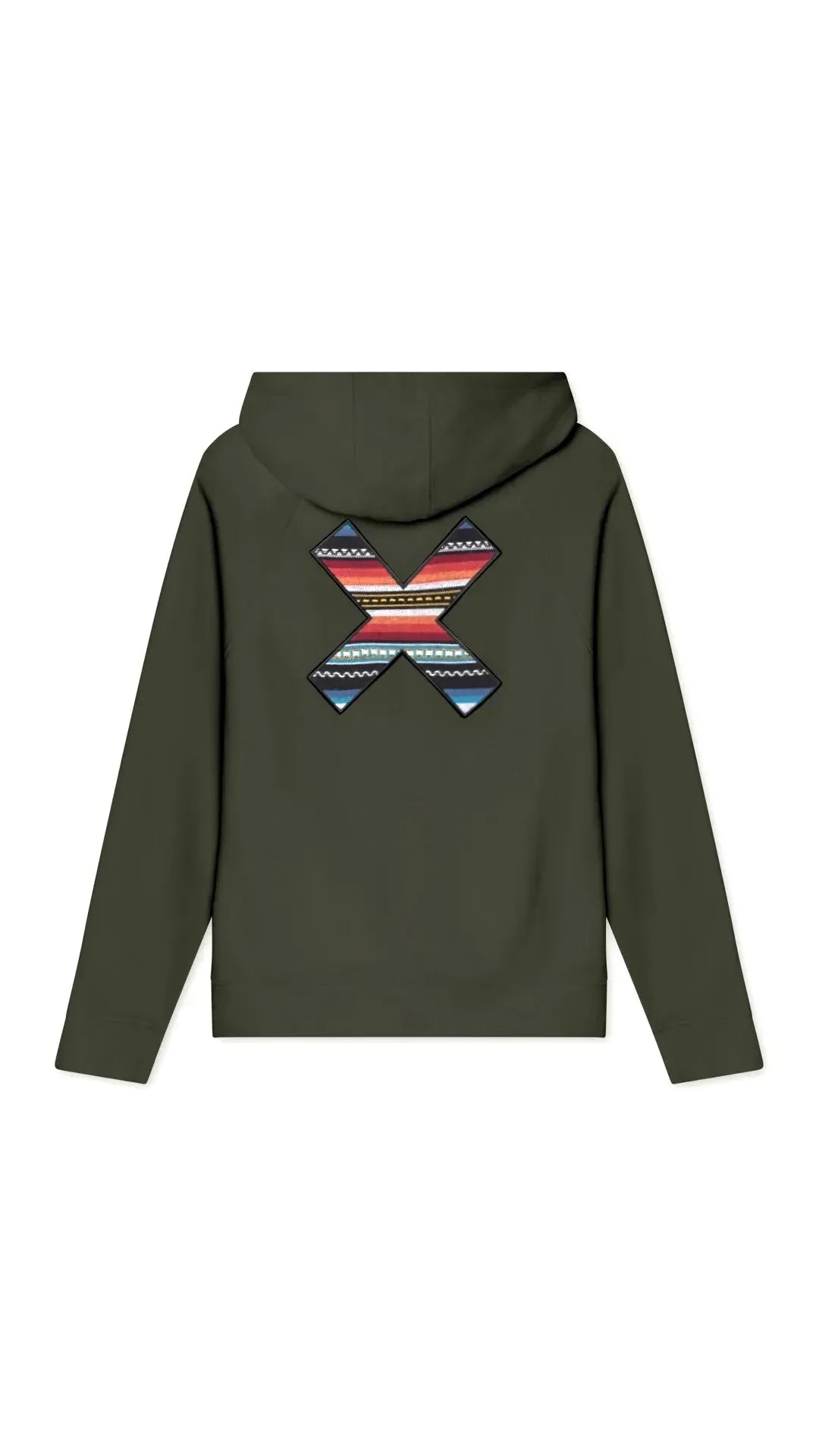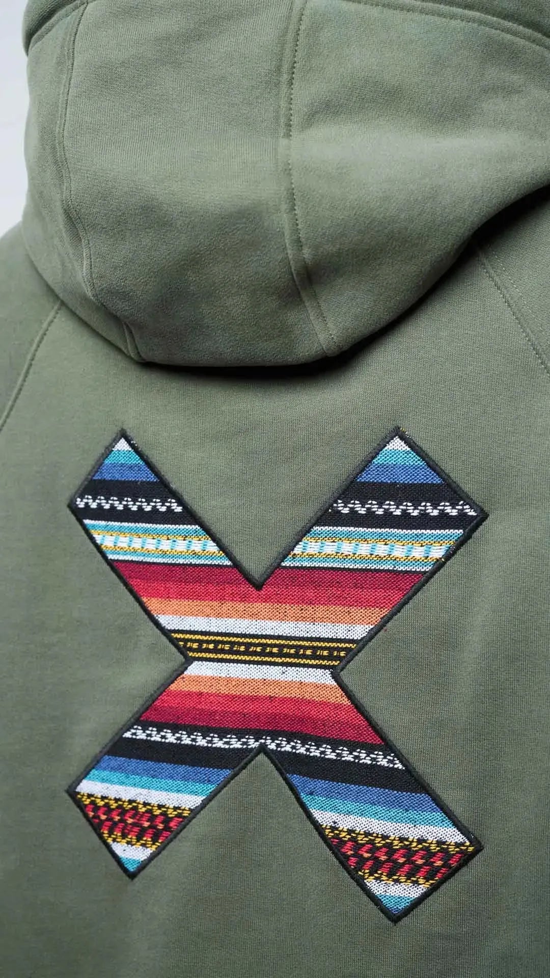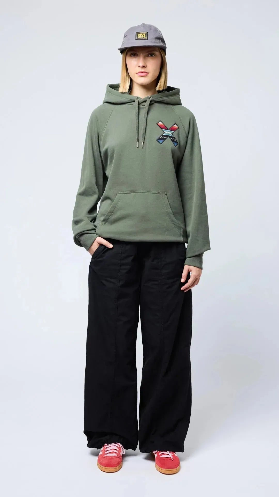 The Hoodie with classic embroidered X from Blue Banana: front on the chest and back on the back. Lower center front pocket with opening on both sides. Made with 100% organic cotton and regular fit cut.