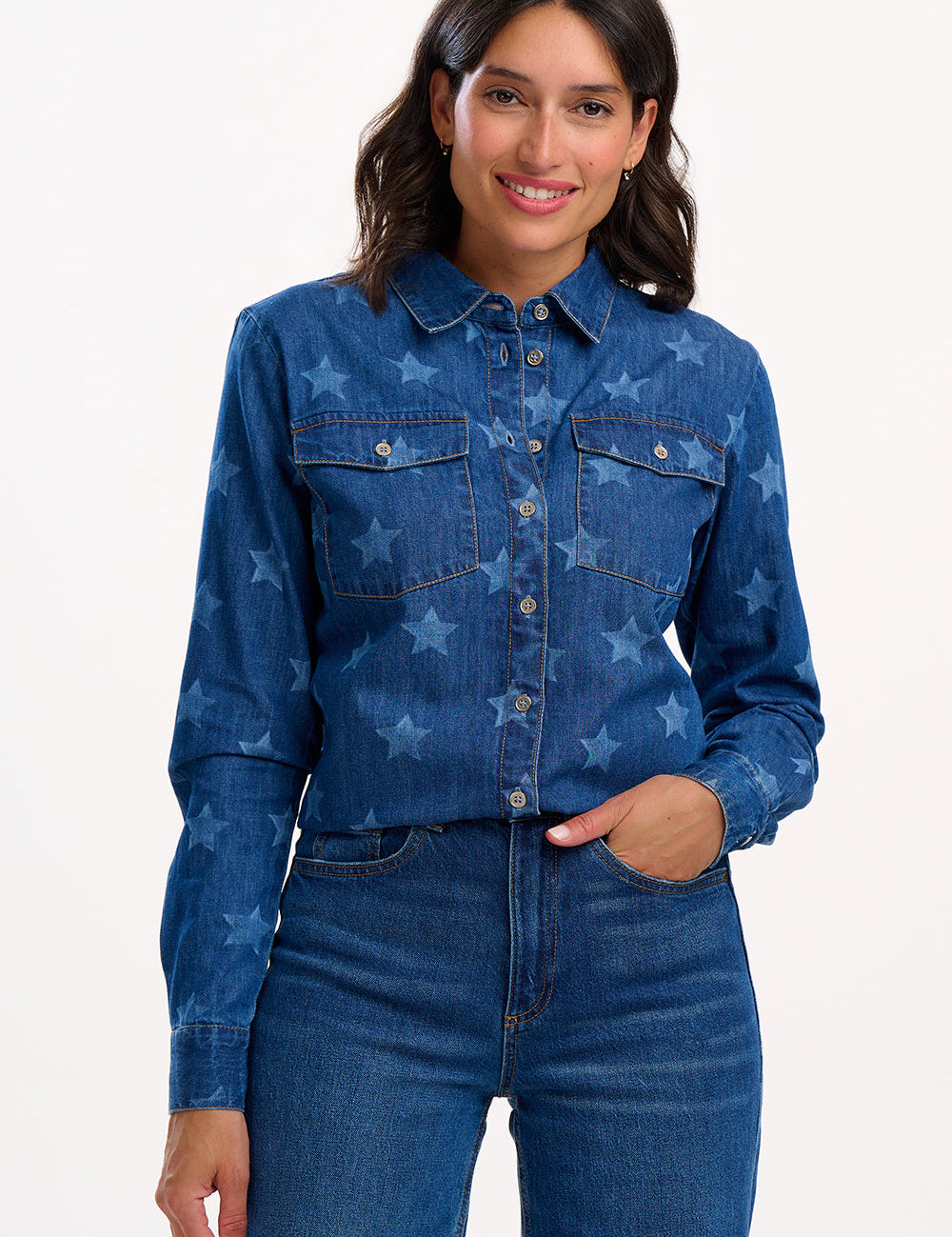 Camisa SUGARHILL Alexia Mid Blue Denim, Bleached Stars