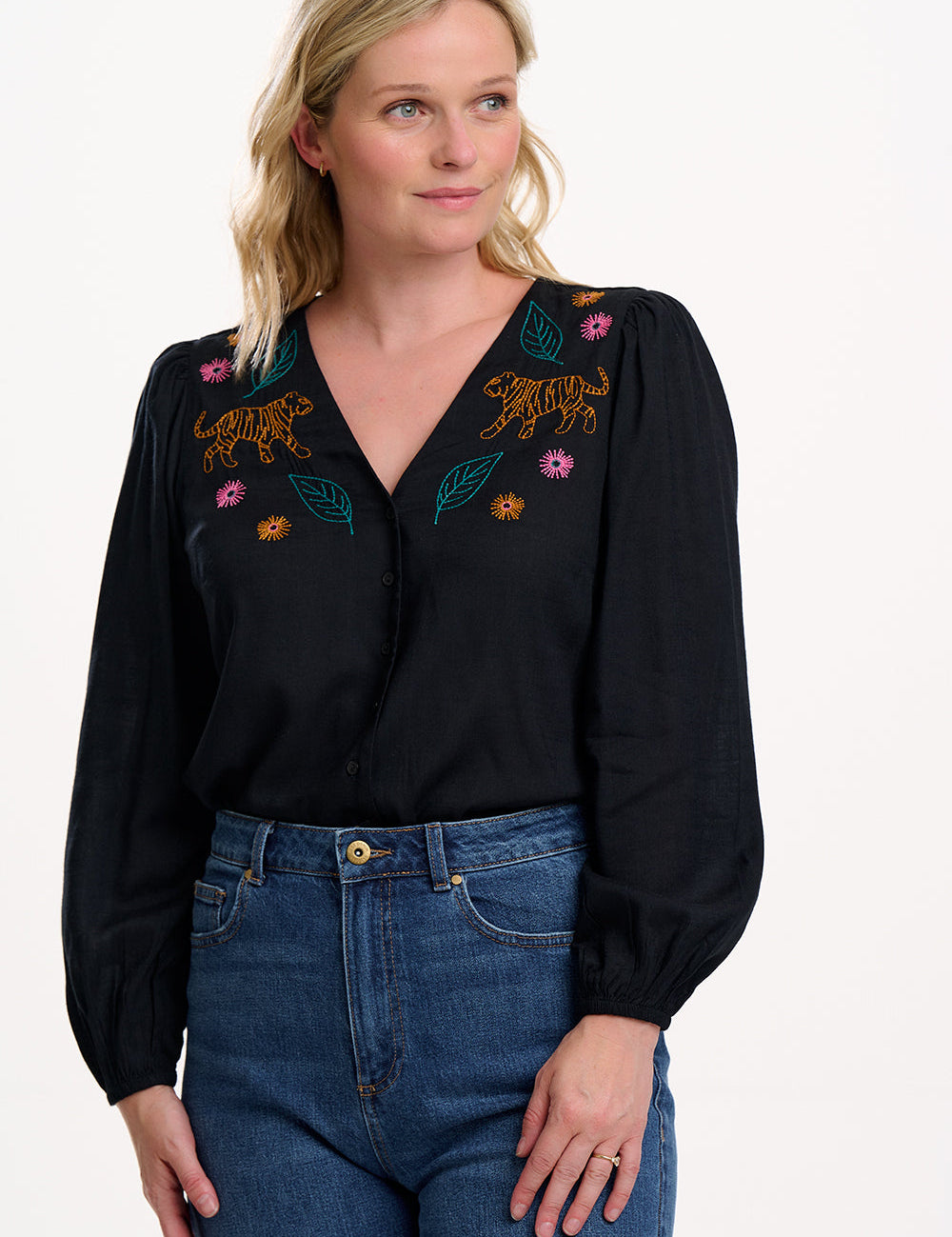 Blusa SUGARHILL Dawn Black, Tiger Embroidery