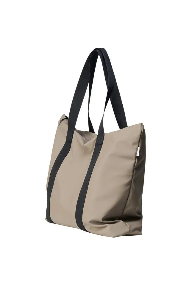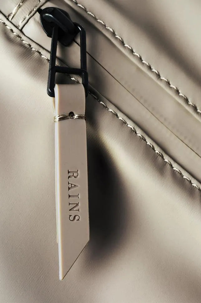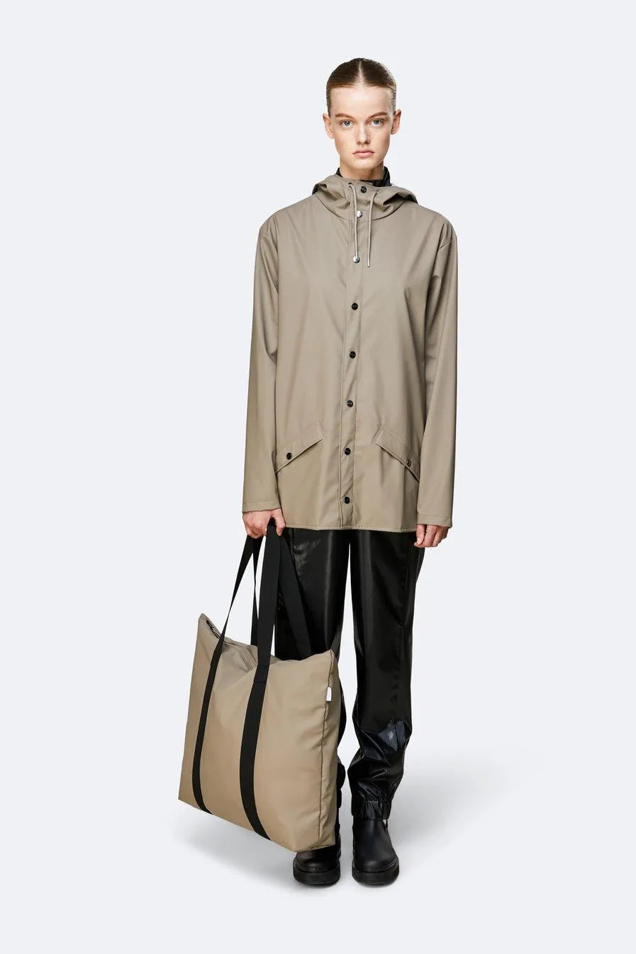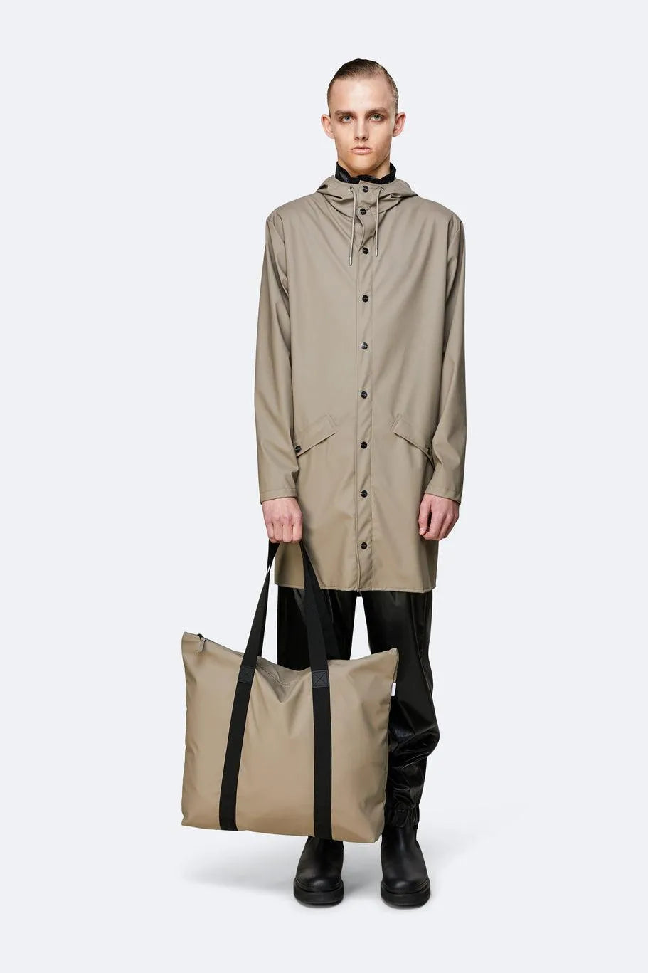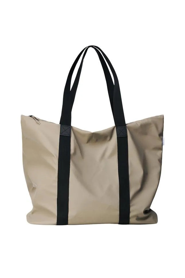Tote Bag is a Rains classic made of a waterproof fabric with a matte finish. Fully lined, the bag has a main compartment with a practical inside pocket. It is completed with two webbing straps and a waterproof zipper to ensure water resistance.