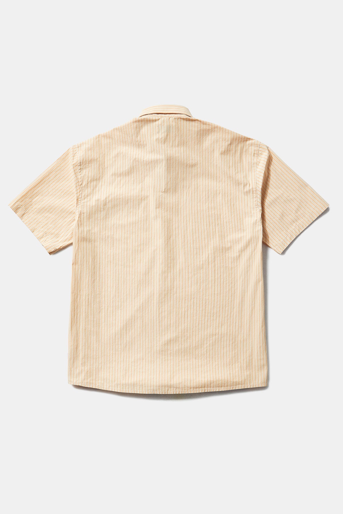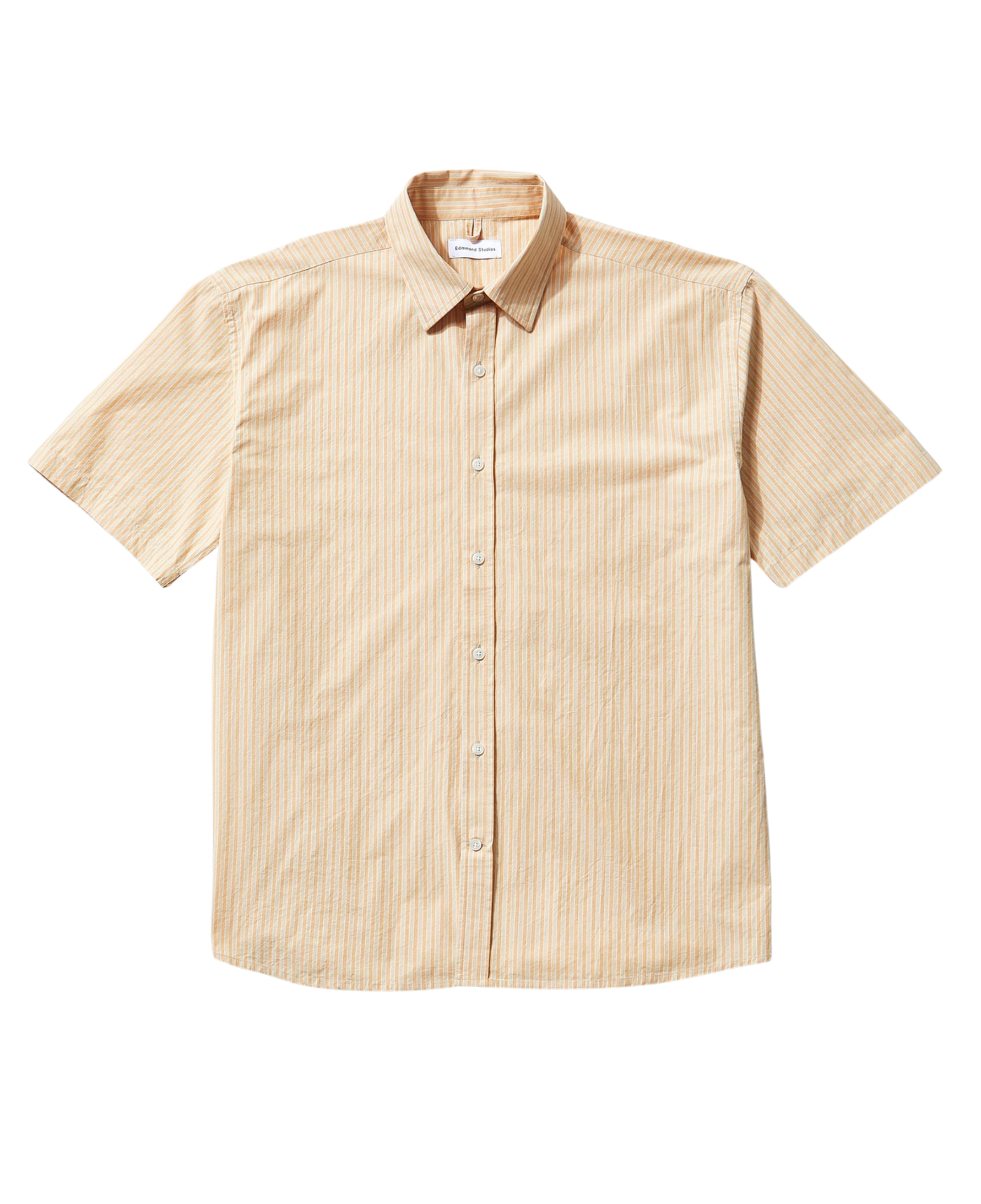 Classic short-sleeved shirt made from 100% organic cotton. It features orange stripes for a unique touch. It features a relaxed fit and regular collar.