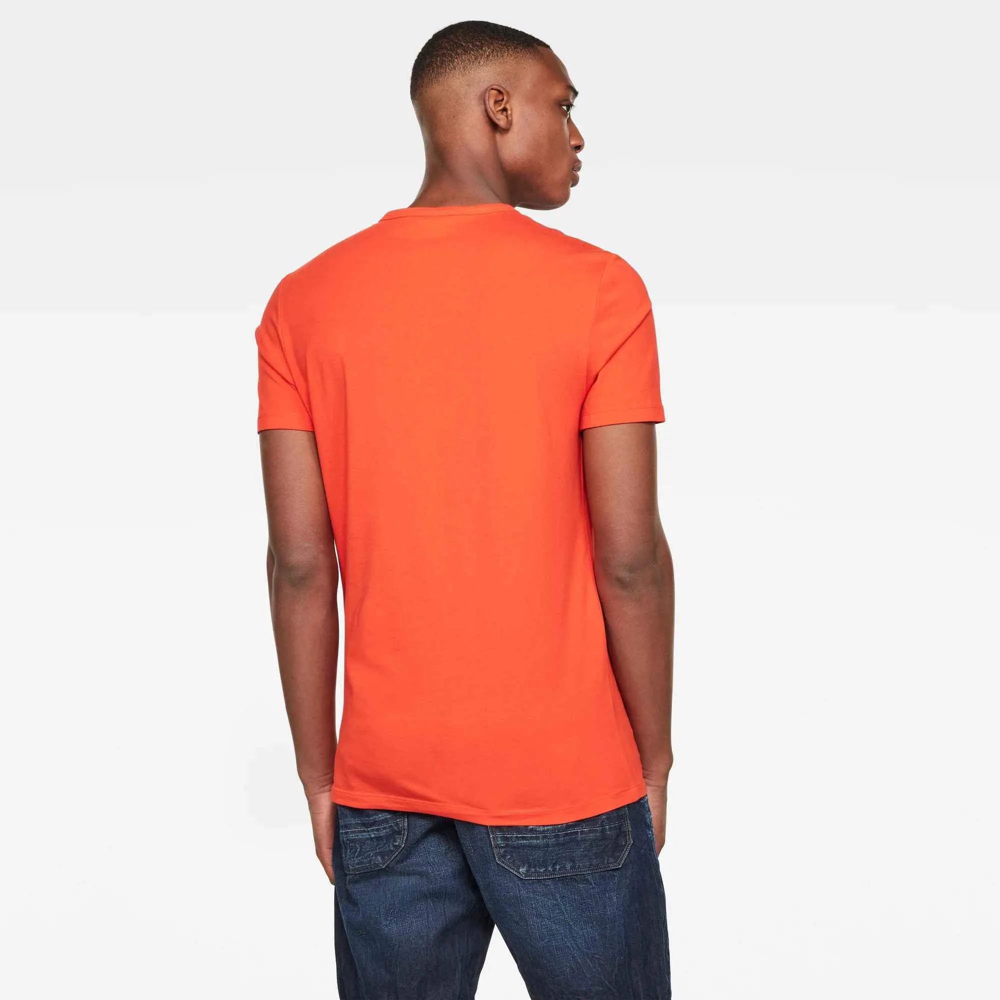 The chest is adorned with a rubber G-Star RAW print that covers part of another graphic. The Multiple Layer RAW GR Slim T-shirt has a ribbed neckline. It shows off a woven G-Star RAW label on the lower front.