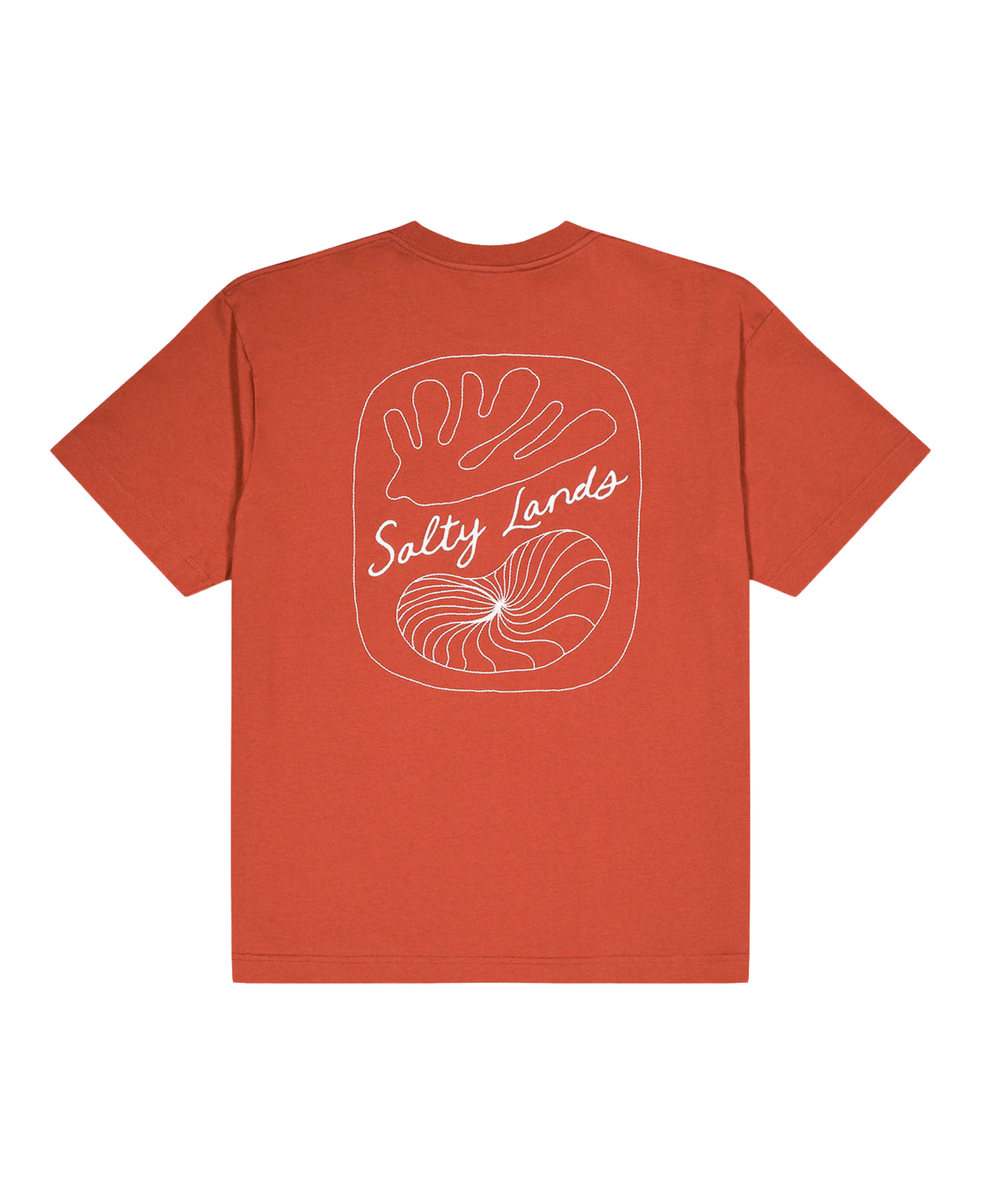 El diseño gráfico de los artistas Risewise, delicadamente bordado en el pecho y la espalda de esta camiseta holgada confeccionada con algodón orgánico GOTS.