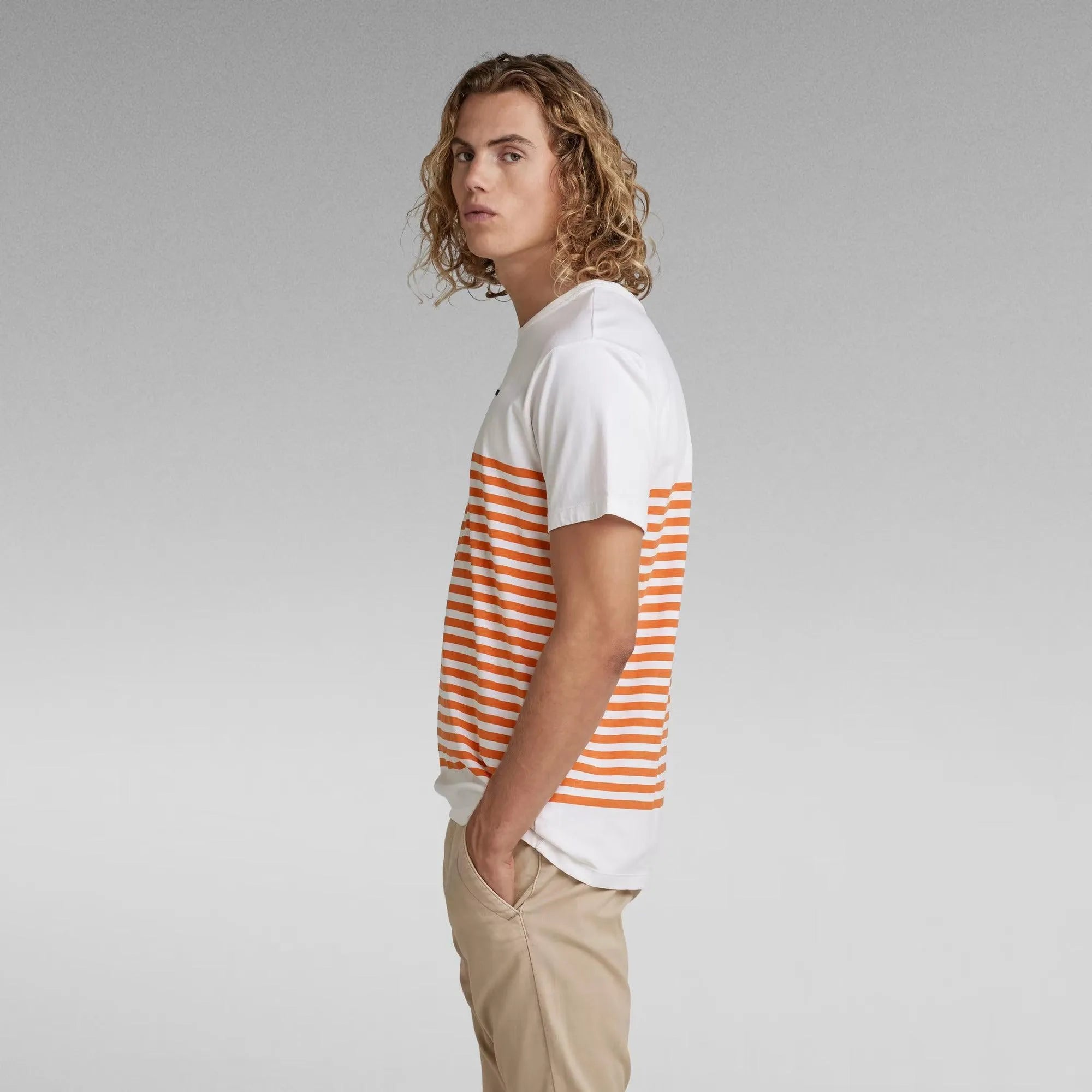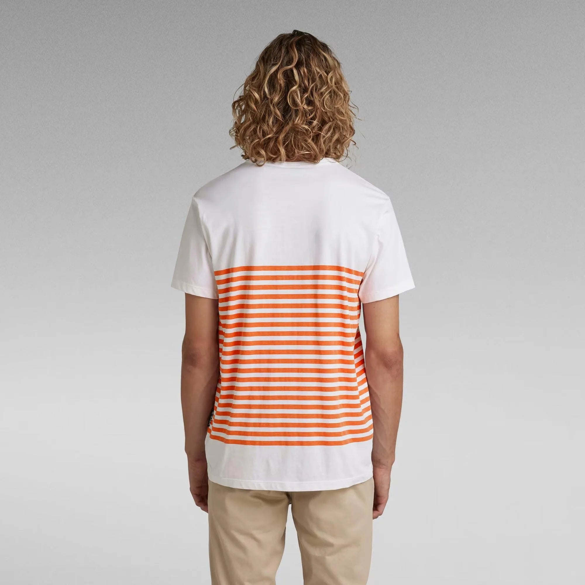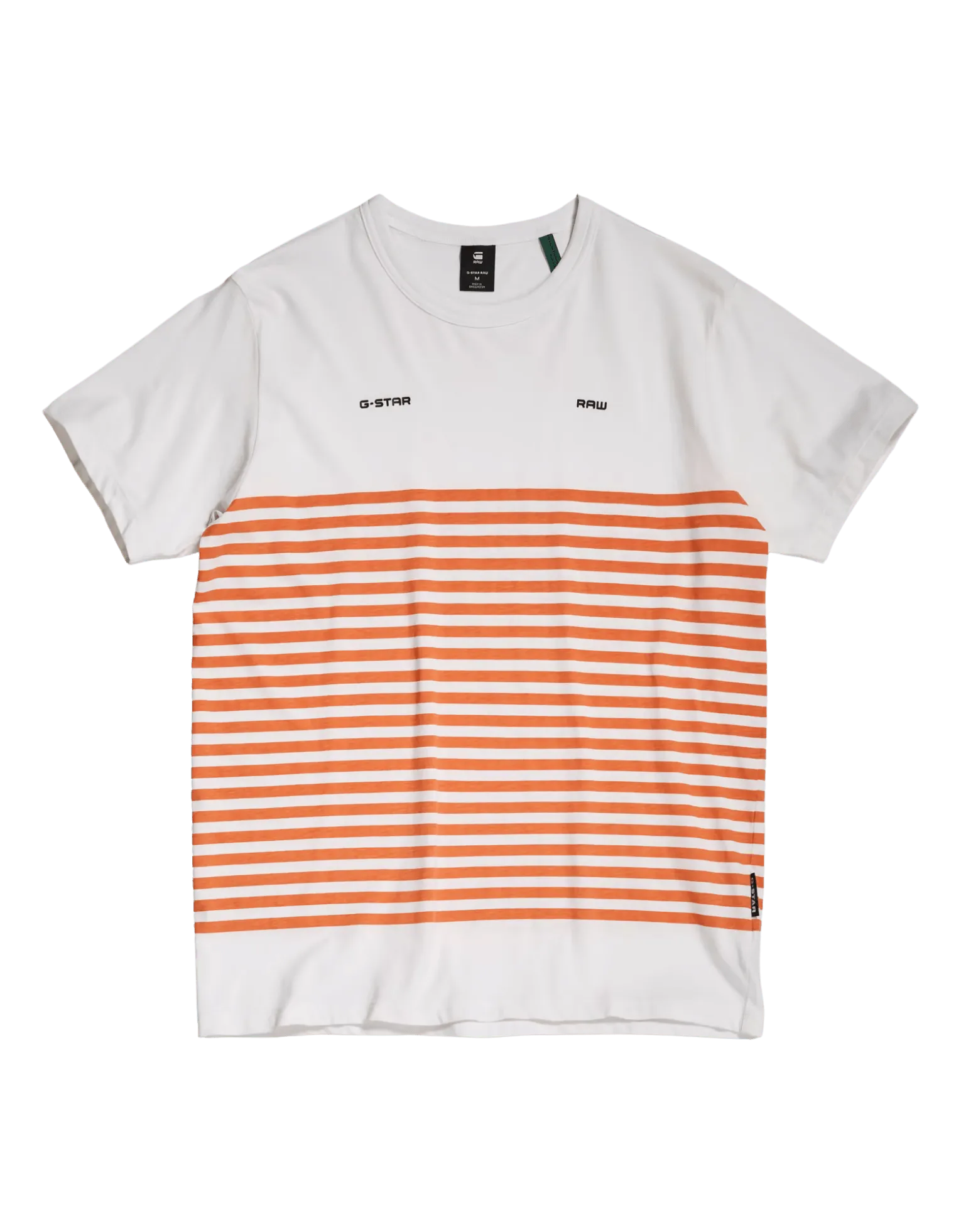 This organic cotton t-shirt features a horizontal striped design. The Placed Stripe Graphic T-Shirt is designed with a straight fit. G-Star RAW graphics across the chest complete the look.