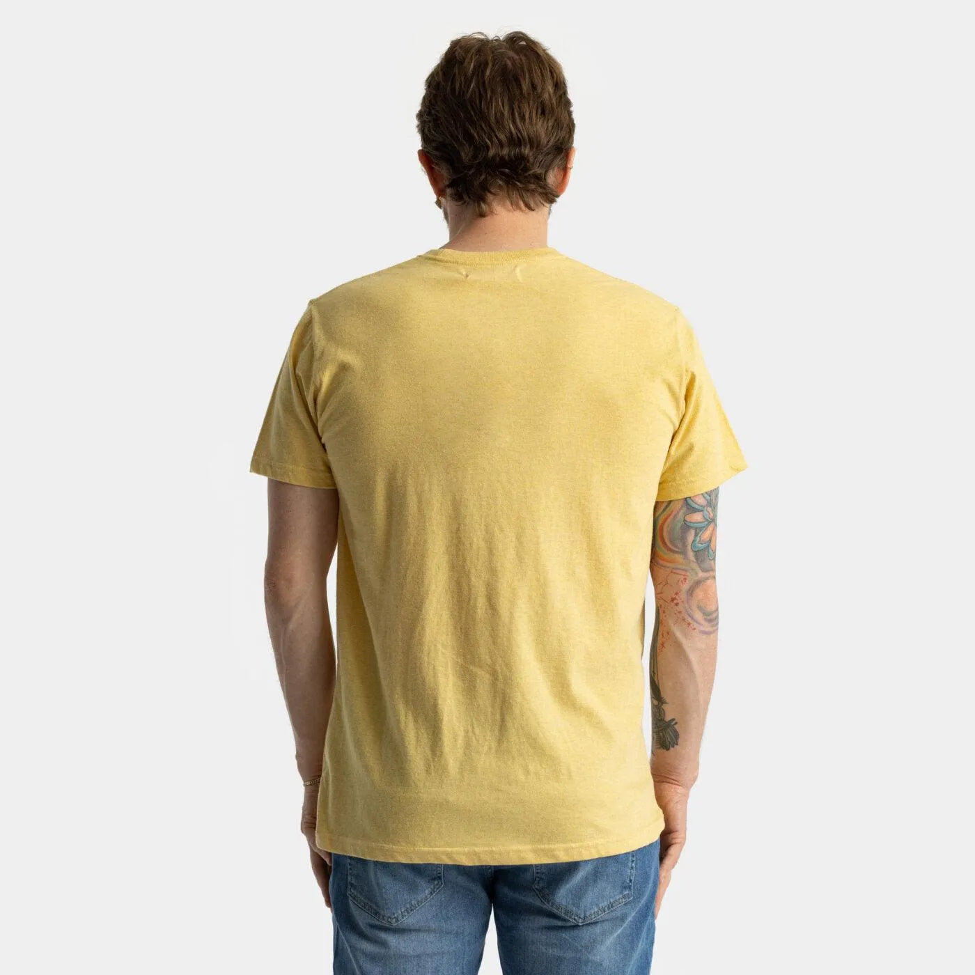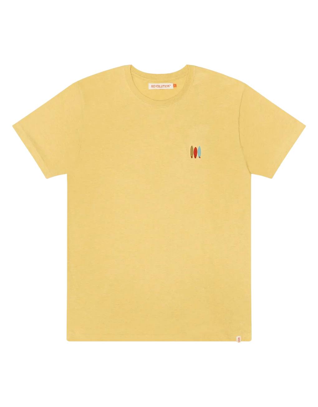Short-sleeved T-shirt in an organic cotton blend jersey with a brand label at the bottom hem. Presents a small embroidery on the chest