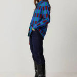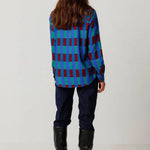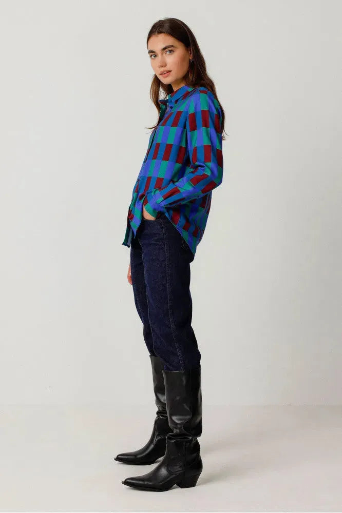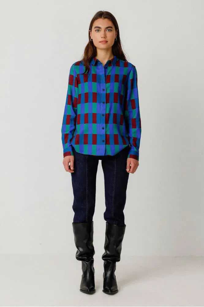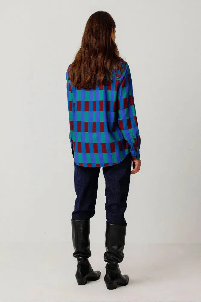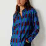 Straight-cut shirt with a shirt collar, long sleeves with buttons on the cuffs and an easy-to-button front closure. Multicoloured geometric print.