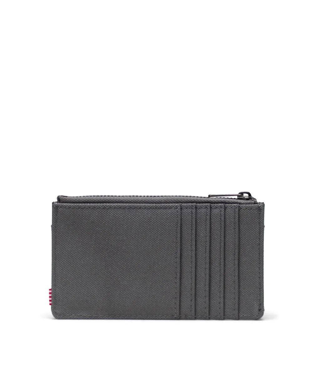 The compact and functional Oscar wallet features a zippered main compartment and external slots for cards, identification and passes.