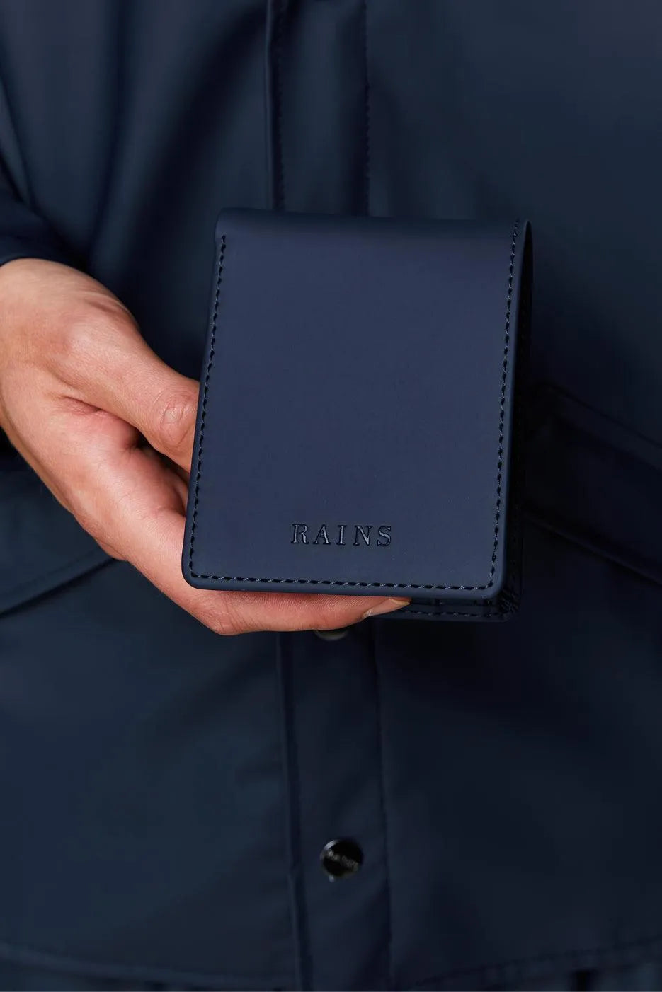The Rains Folded Wallet is an eight card wallet that also features two large partitions for cash and receipts and a snap button coin pouch. The folded wallet is made from Rains' signature waterproof fabric.