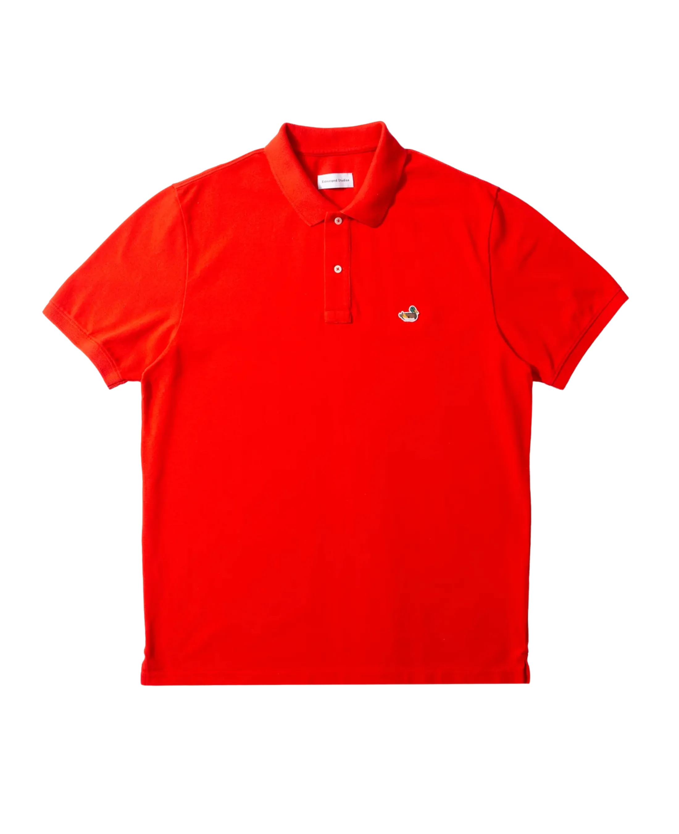 Red polo shirt with a lapel collar, front button closure, and short sleeves. Finished with the iconic duck embroidered on the chest.